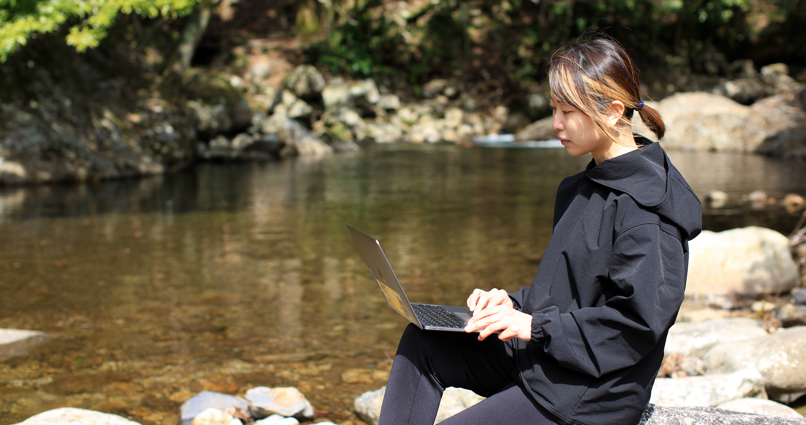 井上さん:とにかく、ここは水がいいんです。川岸に降りると、水や森の力強さがより一層近くで感じられますよね。川の水も森のミネラル豊富で、顔を洗ったり、足を水につけてみたりするのも気持ちが良いですよ。