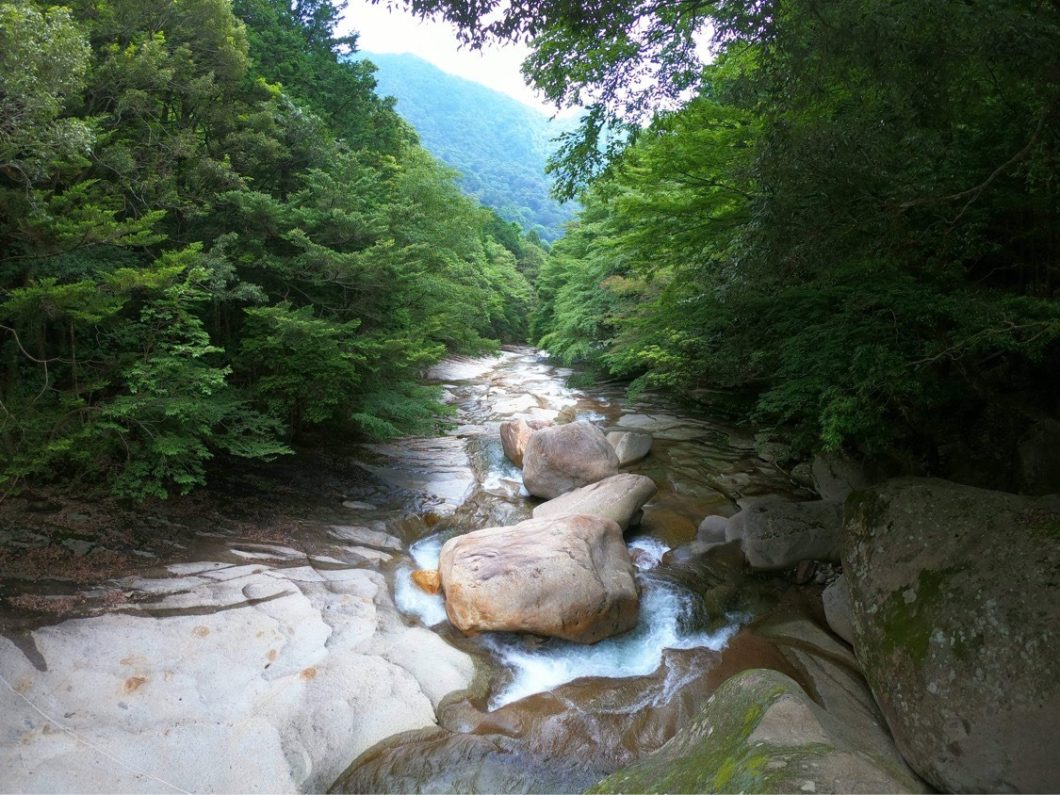 井上さん:ここのオンシーズンは夏なので、ほとんどの皆さんがキャニオニングに興味を持たれています。ここは「滑床」という文字どおり天然の地形を活かした日本屈指のスポットです。また、一般的にキャニオニングといえば宿泊先から現地まで長距離の移動を伴いますが、ここはベース基地となる「水際のロッジ」からすぐのところで楽しめますので、立地的にも優れています。