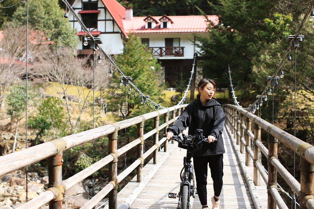 井上さん:様々なeBikeを比較検討しましたが、折りたたむことができ、車に積み込むことができるのでVEKTRONを選びました。水際のロッジに宿泊されたお客さまが、滑床渓谷周辺や森の国だけでなく、少し離れた宇和島、久島や土佐の四万十川まで車にebikeを乗せていけば、また違った旅の楽しみ方ができます。こうしたサイクリングコースも視野に入れていたので、折りたためるというのは大事なポイントでした。フリーサイズなのでファミリーみんなで乗れる点も便利です。