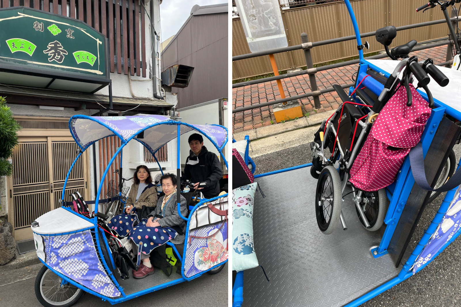 中上さん:昨年 11 月に、車椅子を利用されている 80 代のお母様と娘様からご予約がありました。車体は着物や海外の民族衣装でご乗車されることも想定し低い設計となっていますので、お身体にご不安がある方も楽にお乗りいただけるようになっています。また、前部の椅子を折りたたむことで、空いたスペースに車椅子を乗せることができます。ドライバーにはボランティアで協力いただいている消防士さんや郵便局長さん等、地域に密着したお仕事をされている方がおられますので安心してご乗車いただけます。