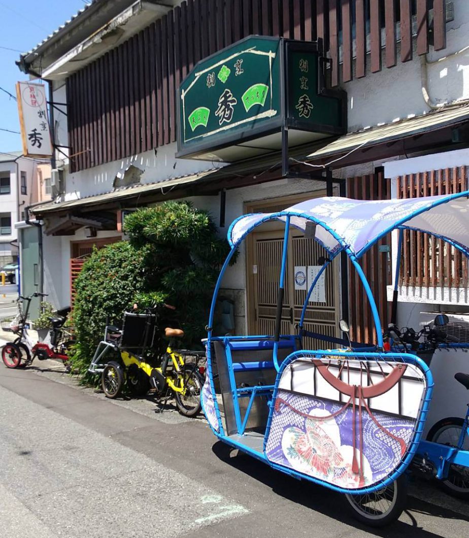 ——堺市は、機械金属で優れた知識と豊かな経験をもっていた「鉄砲鍛冶」たちが自転車部品の製造にあたったことから、自転車産業発祥の地と言われるようになりましたが、元々は、2019年に世界遺産に登録されたことでも有名な古墳を作るために必要な工事用の鍬(くわ)や鋤(すき)を生産するために鉄の加工技術が発達したことを今回調べていて知りました。ところで中上さんは「割烹 秀」の女将で、着物の着付けなどもされていますよね。そんな和服の似合う中上さんが自転車タクシーの運行に携わるようになったところから教えてください。