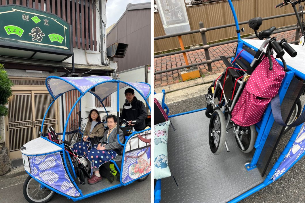 中上さん:昨年 11 月に、車椅子を利用されている 80 代のお母様と娘様からご予約がありました。車体は着物や海外の民族衣装でご乗車されることも想定し低い設計となっていますので、お身体にご不安がある方も楽にお乗りいただけるようになっています。また、前部の椅子を折りたたむことで、空いたスペースに車椅子を乗せることができます。ドライバーにはボランティアで協力いただいている消防士さんや郵便局長さん等、地域に密着したお仕事をされている方がおられますので安心してご乗車いただけます。