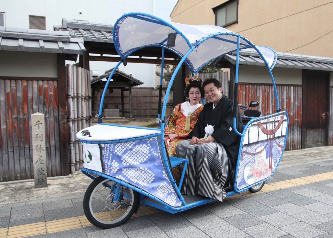 中上さん:自転車タクシーは堺の歴史、文化そして人を繋ぐ乗り物として、風景も楽しみながら移動できるちょうど良いサービスだと思っていますし、堺だけでなく日本の文化にも興味を持つきっかけになれば嬉しいです。チクロヴォーチェのサービスは主にチームのメンバーである市内事業者3社によりそれぞれ特色のあるプランをご用意しております。私が女将をしています「割烹 秀」では食事付きプランを提供しています。「堺の和体験 知輪-chirin-」では着物レンタル、コーディネート、着付け付きのプラン、「石原写真館」ではフォトウェディングプランもございます。また、チャータープランもございまして、コースの内容を自由に決めていただいたり、お任せいただくことも可能です。お客様が堺のどんな事を知りたいかによってコースを設定し周遊するプランとなっておりまして、三味線体験や和菓子店へ立ち寄ったり刃物作りの見学、お抹茶とスィーツを楽しんでもらったりとご要望に応じたオリジナルのツアーとなります。各コースの詳細は堺観光コンベンション協会公式サイトから「自転車タクシー」と検索していただいてチクロヴォーチェのプランをご覧ください。