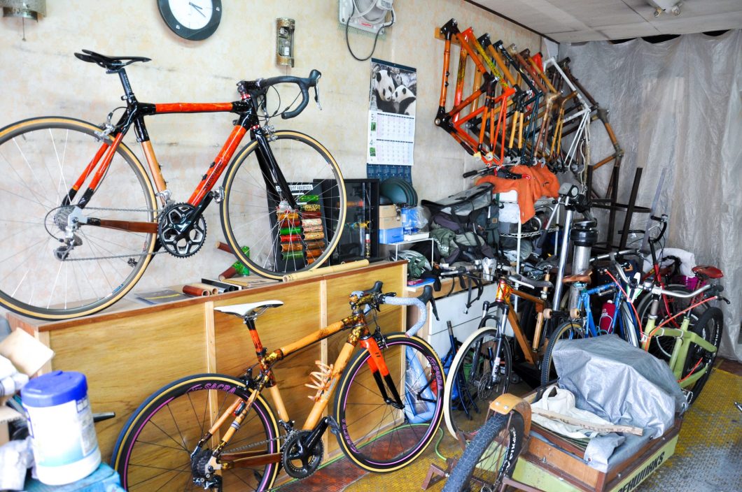 フレームサイズもミリ単位で調整できるし、体が小さいとか、硬さの好みも要望にも合わせます。重要なのは前後にどれくらい重量をかけるかのバランスです。それが一番難しい。だから体の硬さとか、どんな走り方をするかとかを聞いて作っていて、完成は人によって全然違います。予算もお客さんと相談します。こちらが費用を提示するわけではなく、どんな自転車に乗りたいかとか、素材は何がいいか、形のイメージなども相談して決めます。この前は、自分の土地で取れた竹で自転車を作りたいっていう人もいました。