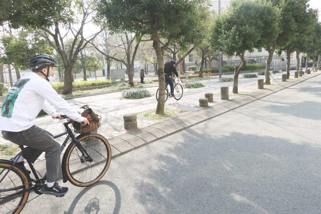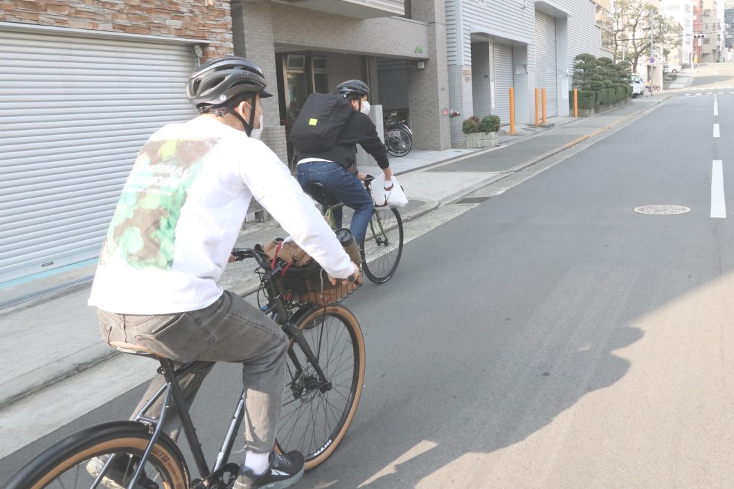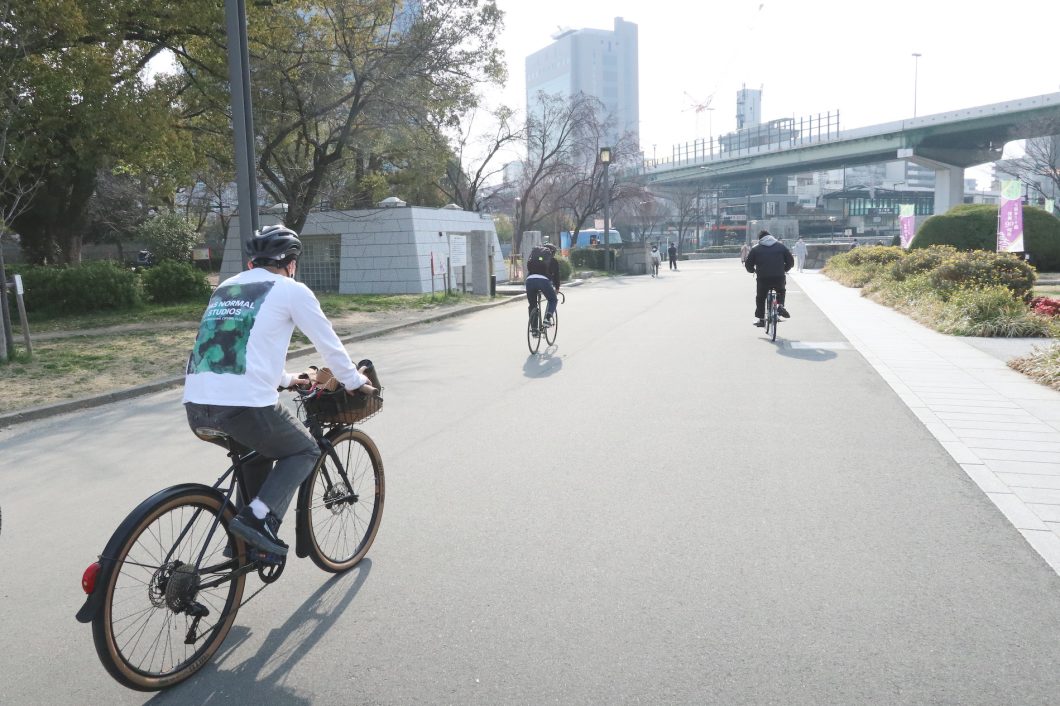 たしかに自転車なら、気ままに現地集合、その日の気分によっていく場所を柔軟に変化できるし、公共交通のアクセスはもはや関係ない。特に近年の大阪市内は自転車レーンが整備された通りも少なくないし、都会とは言え自転車で走るのも意外と快適だ。やりたいこと、行きたい場所をとても自然に、かつシームレスに繋ぐことができるのも、やはり自転車ならでは、なのかもしれない。