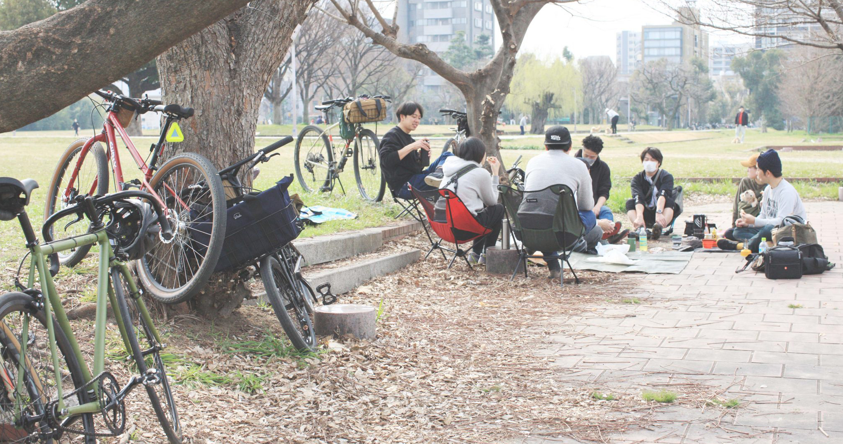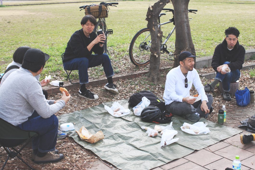 今回はMOVEMENTの二人による事前の声かけで、ご近所の自転車ラヴァーたちと一緒に、みんなでピクニックブランチ。