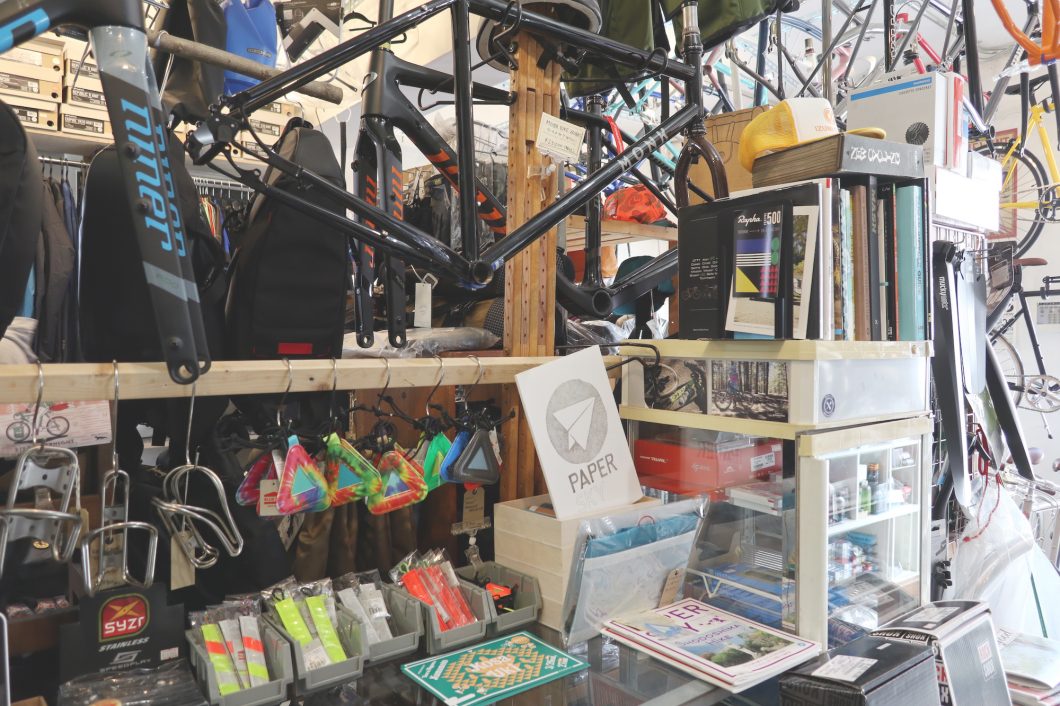 互いに自転車という共通項はありながらも、年齢や影響を受けたもの、過ごしてきた環境も対極的で、話してみてもやっぱり違った感性を持っていることが感じられる。そんな二人で切り盛りする店だからこその視野の広さで、「日常の足として楽しむ自転車」と「スポーツとして楽しむ自転車」をボーダレスに提案している。