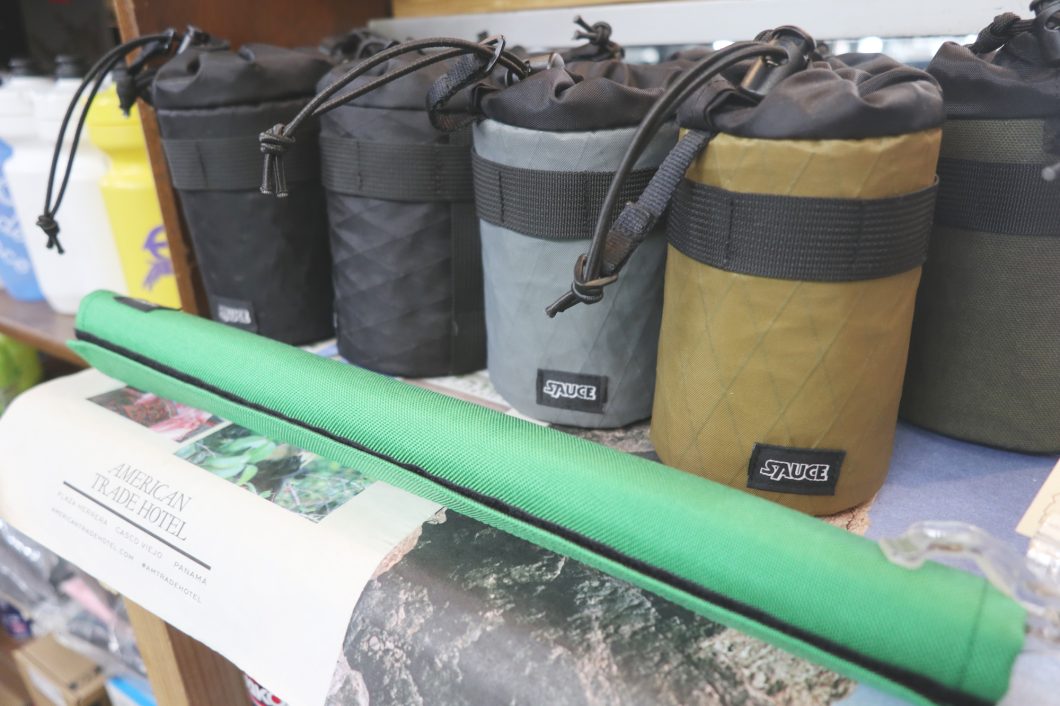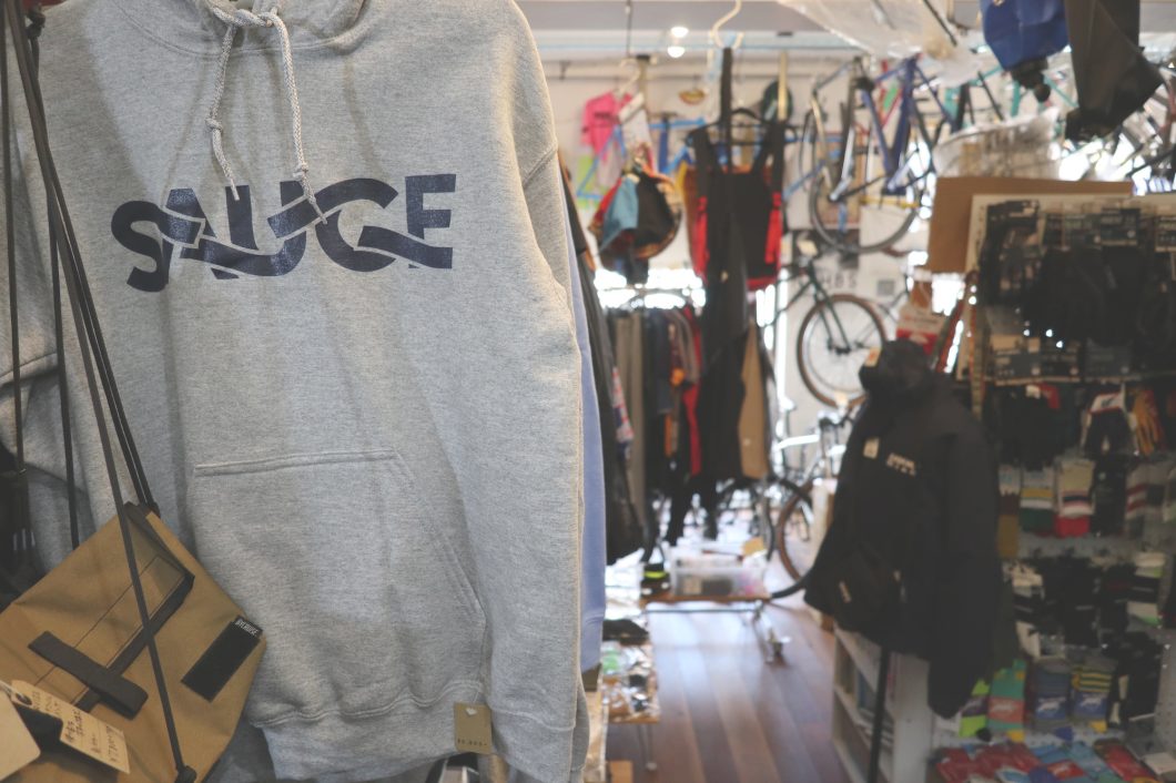 堀:あとは、ELUSIVEっていうデザインスタジオと共同で「SAUCE」というオリジナルブランドを展開しています。ブランド名には「自転車に自分たちなりの味付けをする」という想いを込めつつ、基本的には自分たちが欲しいものを形にしてます。最近はSNSでの反応もあったりとかで、今後も少しづつ商品を増やして行けたらなと。パートナー自身もサイクリストで、もちろん自転車関係のアパレルやショップのビジュアルデザイン周りでの実績もありますし、僕らからはやりたいイメージをオーダーしつつ、細部まで拘った作りを心がけています。