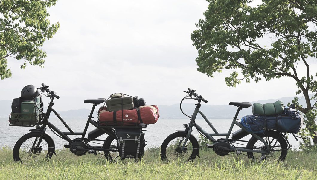 最大150kgの車両総重量テストに合格した強固なフレームに加え、一般的なシティサイクルと同等並みのサイズ感ながら最大400%とも言われる積載能力を持っており、自転車キャンプにも大活躍です。