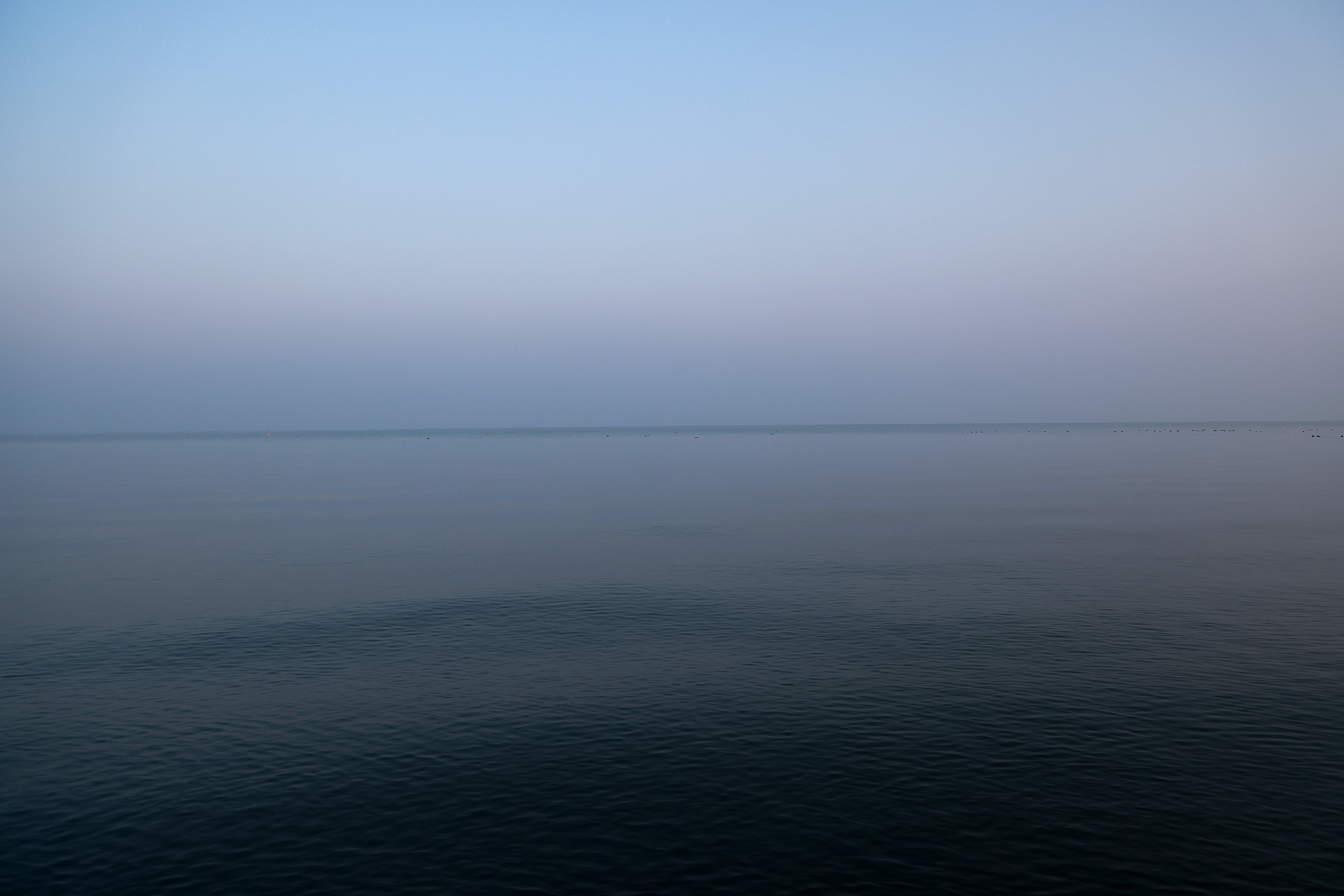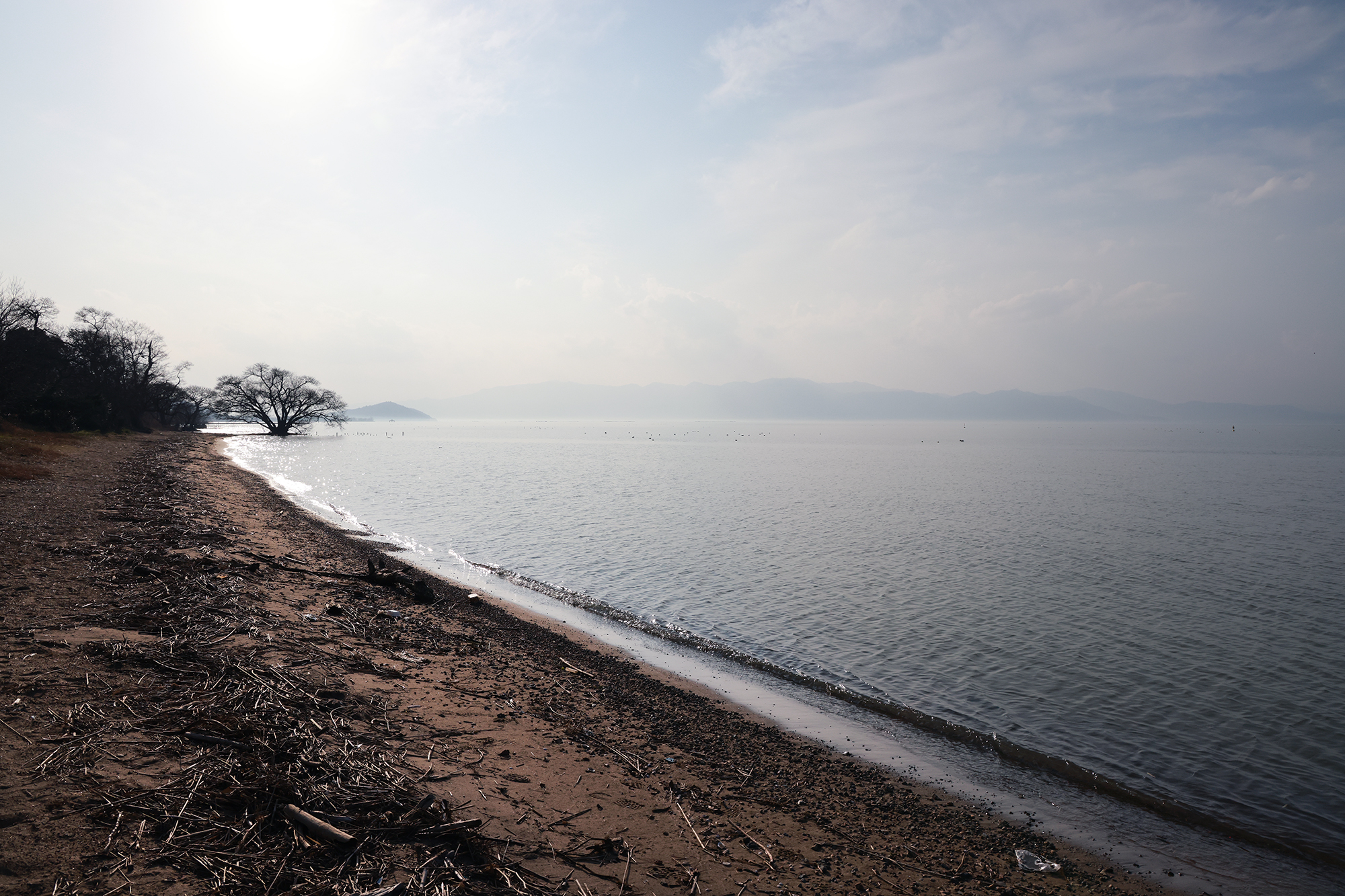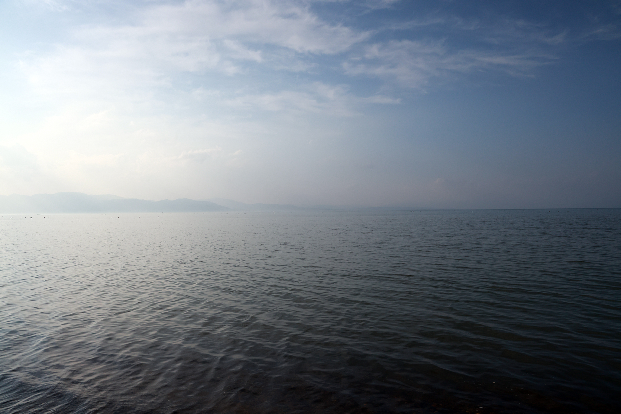 清々しい気分で朝を迎えた。無事に一夜を乗り越えた安堵感が大きい。琵琶湖の対岸は霞んで見えない。