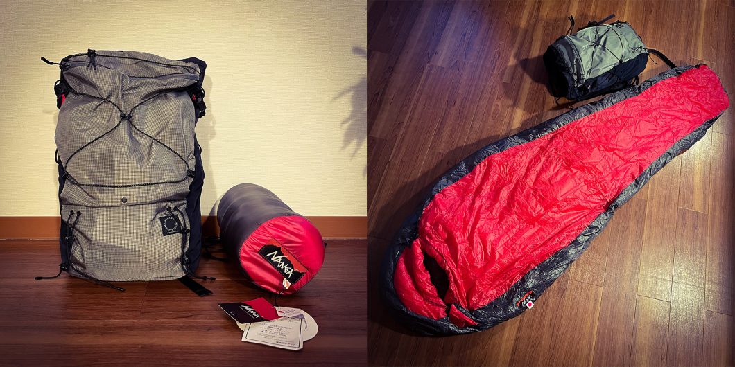 装備に関する前回からの大きな変更としては、シュラフをメッシュ状のインナーシーツから、冬の低山まで使用可能なものにした点。スペックと重量のバランスをみて、NANGAのUDD BAG 450DXを選んだ。スペック的には快適使用温度 1℃ / 下限温度 -4℃、ダウン量 450g、総重量 約825gとなる。収納時のサイズは、ファミキャンで使っているシュラフとは比べものにならないくらいコンパクトだ。
