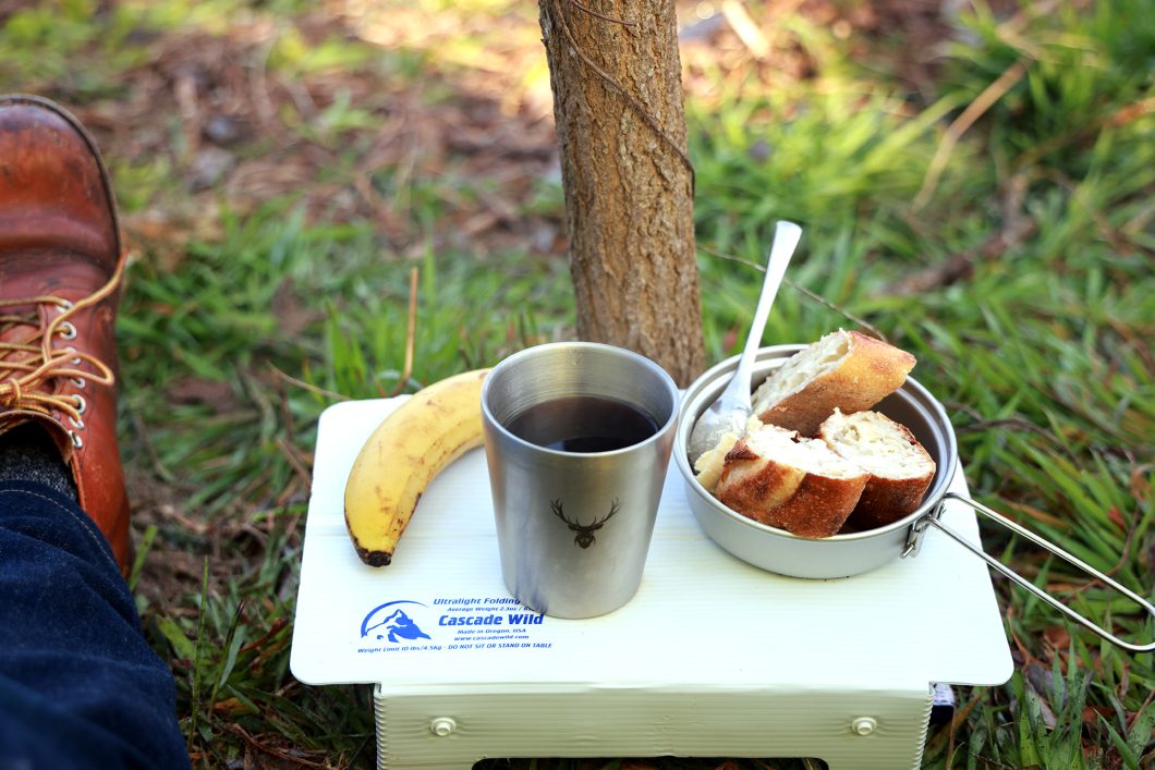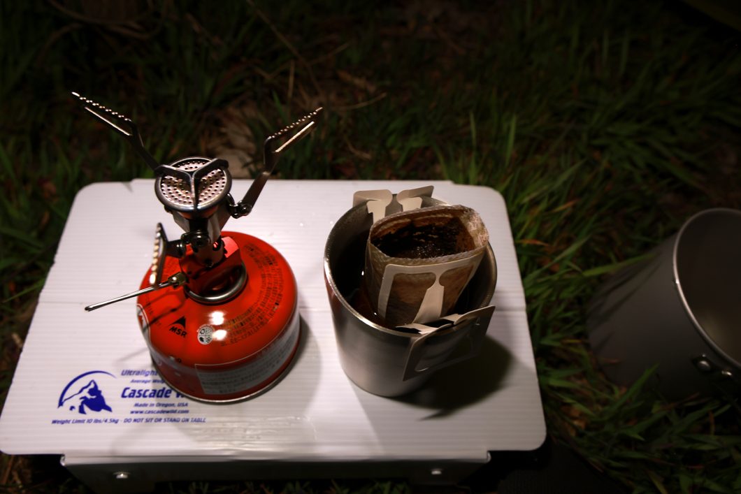 タープを張った姿を想像しながら歩き回って、ようやく場所を決定。設営前にコーヒーでも飲んで休憩しよう。