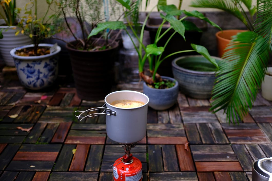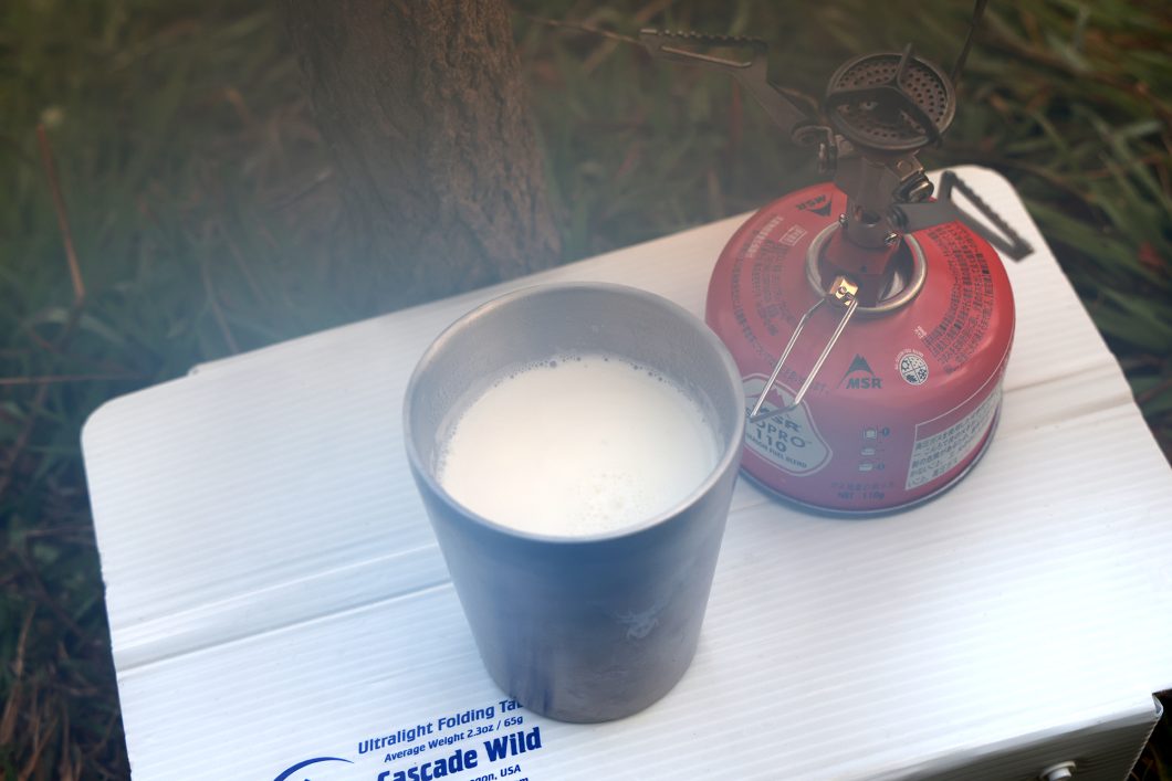 湯気でレンズが曇った。朝一で飲むホットミルクが美味しい。自宅キッチンのガスレンジと同じくらい気軽に火を使えるシングルバーナーの存在は大きい。