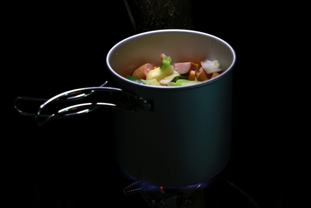 しばらく煮詰めるだけで、出来上がり。こんなに食べられるかなーと思ったものの、完食した。家庭の中で料理をするのはハードルが高いが、ソロキャンプなら料理初心者でも気負いせずに1から取り組めるような気がする。
