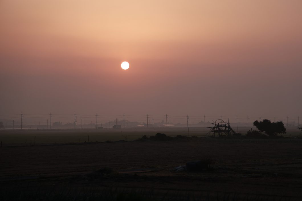 朝日を見に、散歩してみる。畑の向こうでトラックが走っている。町が動き始めた。