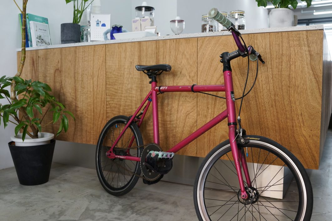 「古着も好きだったし、同僚やお客さんとのコミュニケーションの中で、ピ/ストやBMXなどのストリートカルチャーに触れる機会も多くありました。いろんなワザに挑戦している友達にも影響されて、ちょっとした遊びもできる自転車を選んだんです」