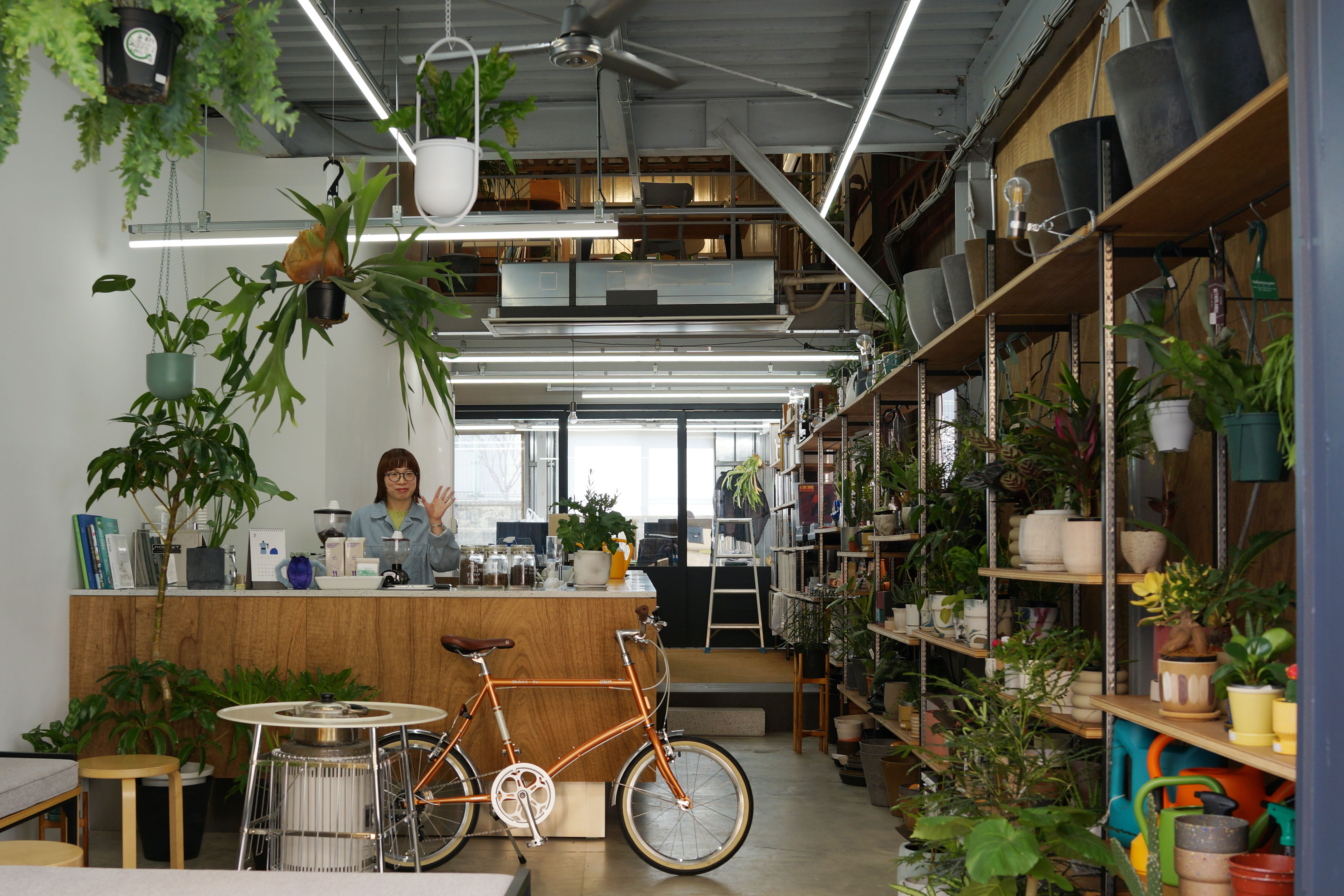 隅田川のすぐ近く、下町の気安さとおしゃれさを併せ持つエリア。東京都・錦糸町駅から歩いて15分ほどに位置する「PERK SHOP」は、観葉植物とコーヒーを扱う店だ。店舗の奥は建築事務所になっていて、コーヒーを楽しみながら住まいの相談をすることもできる。2021年8月のオープンから、建築家である夫と共にこの店を切り盛りする八田春菜さんに、自転車との出合いや現在の楽しみ方を聞く。