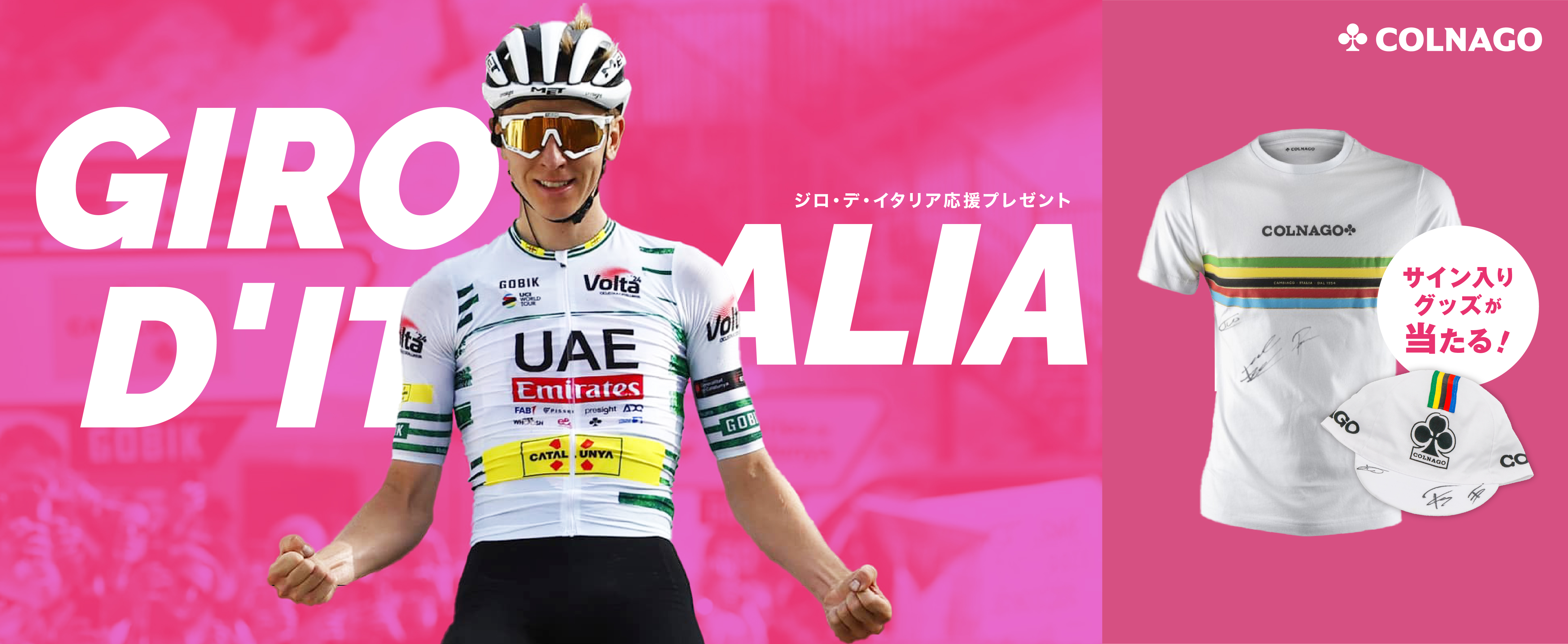 コルナゴがオフィシャルパートナーを務める第107回ジロ・デ・イタリアの開催を記念して、日本公式インスタグラムアカウントのフォロワーの方へ抽選で2名様にタデイ・ポガチャル選手サイン入りアイテムをプレゼントいたします。