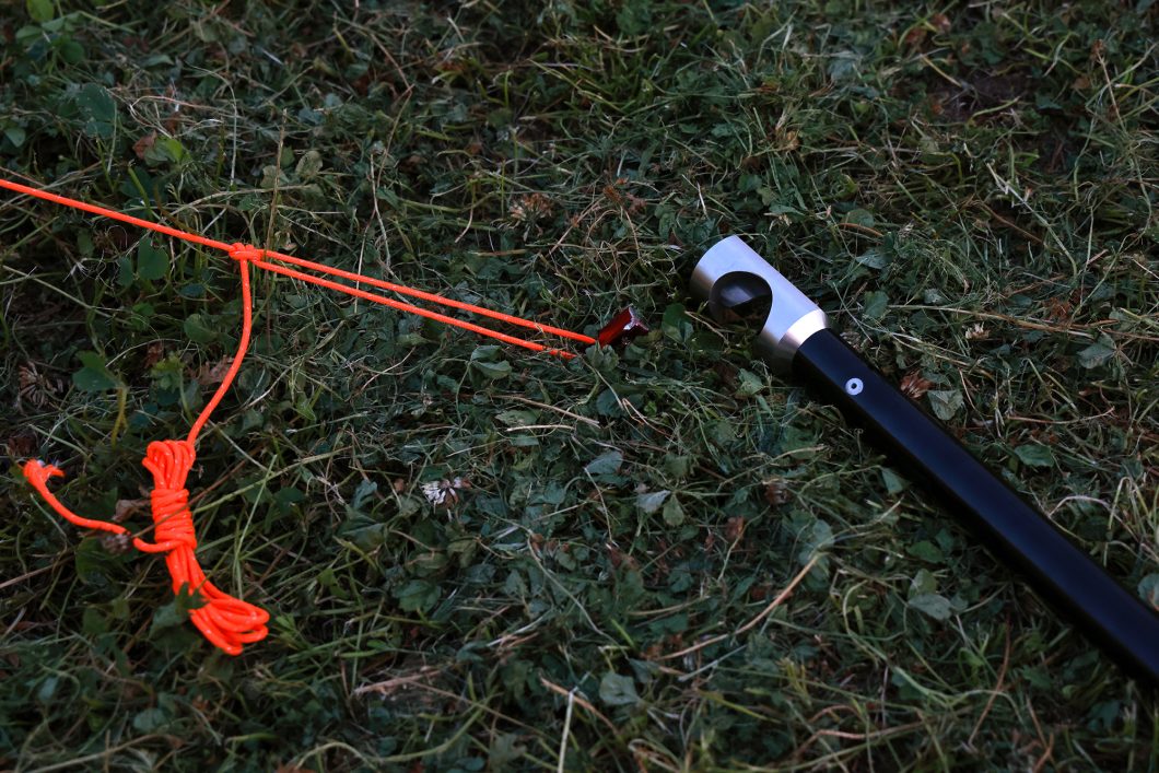 前回から追加した装備は、ペグハンマー。一般的に、硬くて重いハンマーの方がペグを打ちやすく、軽いハンマーだと打てるペグの材質やサイズ、地面の状態にも制限が出るなどトレードオフの関係にある。この輪行ソロキャンプでの装備は軽さ重視なので、手足で土に押し込んだり拾った石で打つよりは確実に便利…くらいのギリギリな製品を探していたところ、muracoのCARAJAS™ PEG HAMMERという製品に行きついた。236 gという軽さが実用に耐えないかも、と心配していたが、自分の使っている軽量アルミペグには必要十分、かなり使いやすかった。シンプルな形状でパッキングにも有利だし、何より格好いい。