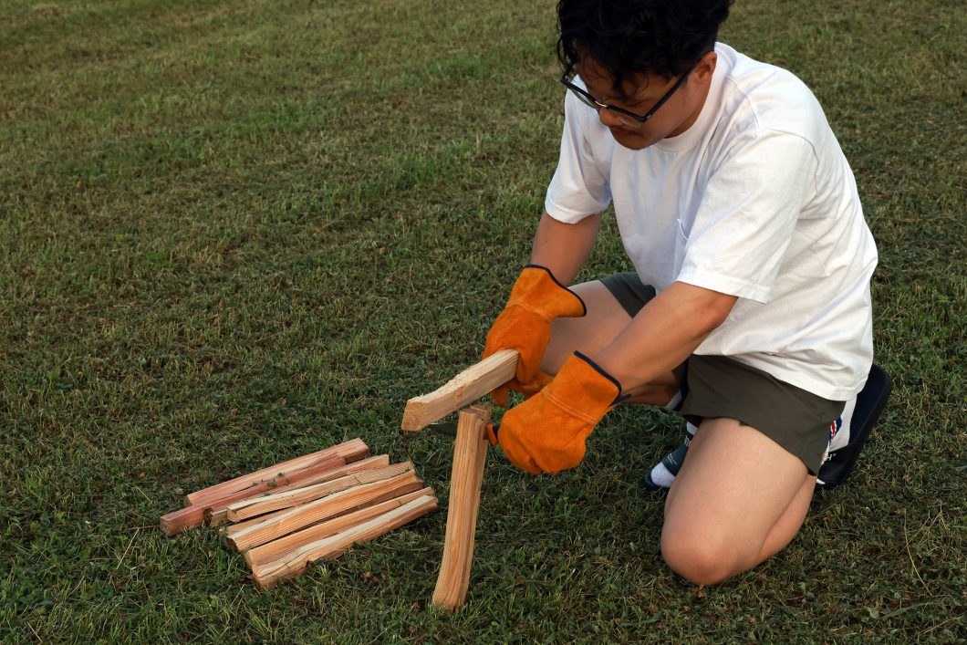 バトニング(薪割り)もお願いした。モデルがいると撮影が捗る。