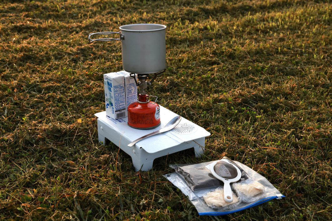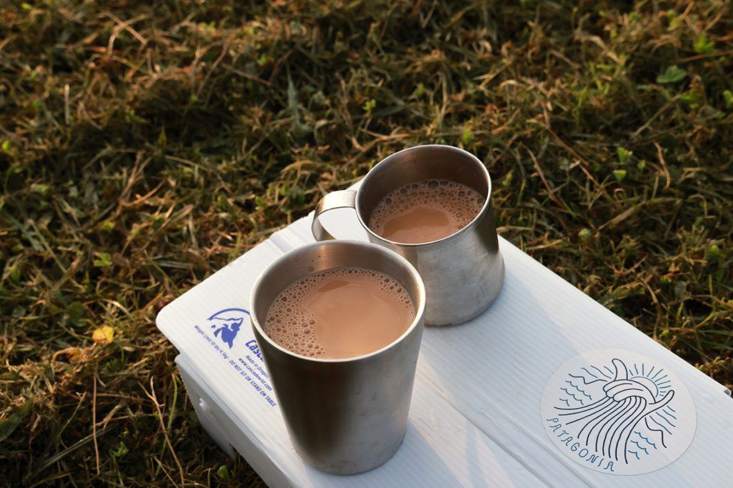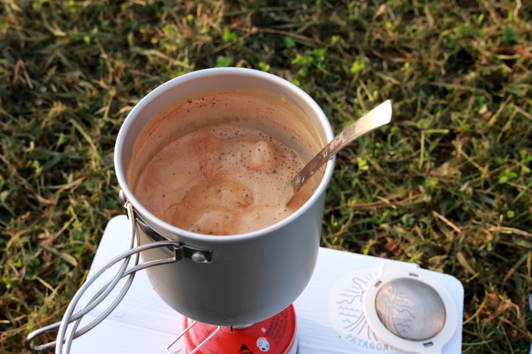 ソロキャンプでチャイを淹れるのは3回目かな。チャイを飲んだことが無いというので、スパイスは入れずにノーマルで。