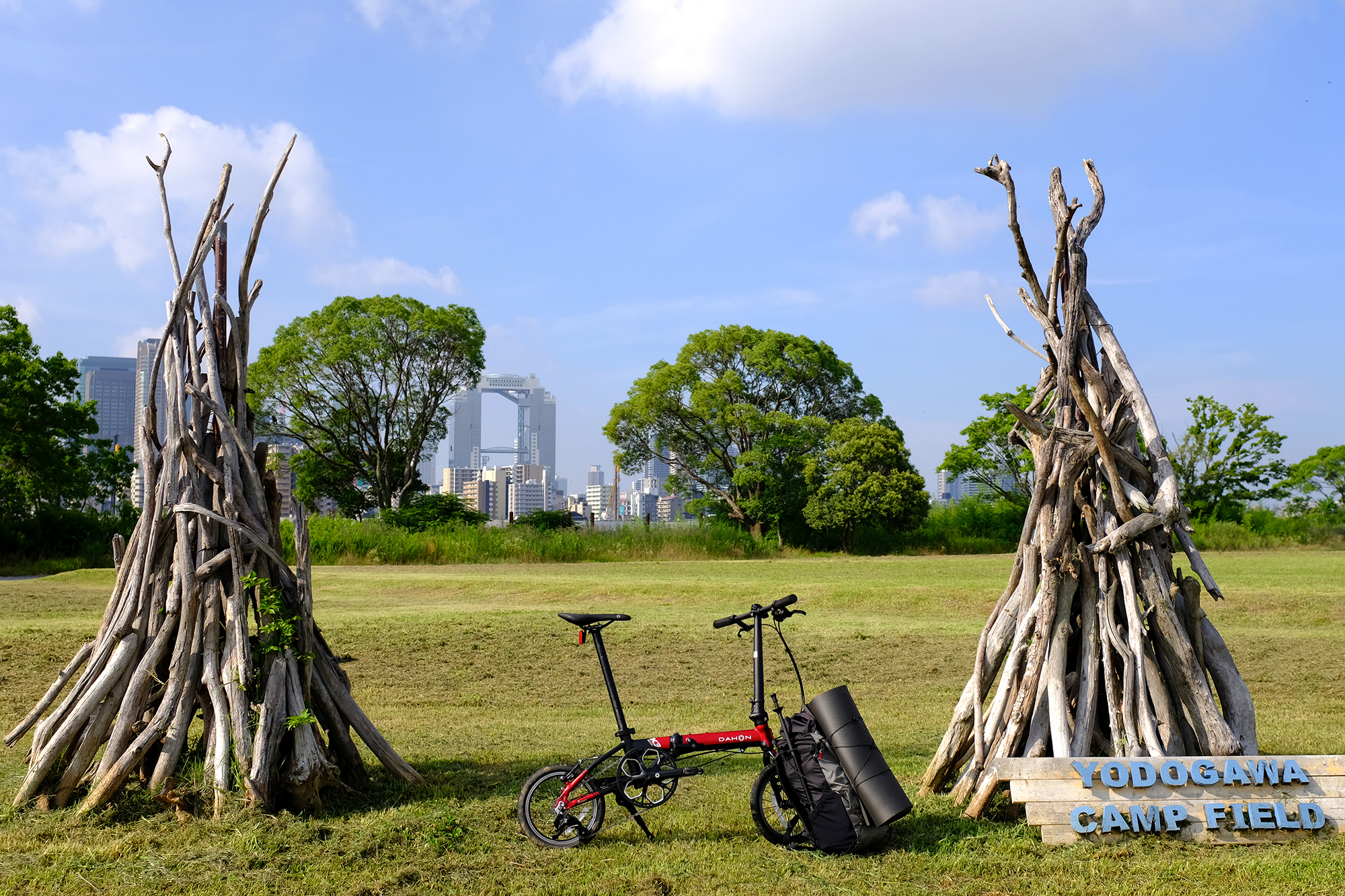 短い梅雨が明けた大阪。今回の出発地点は梅田に設定。ここからキャンプ場までは自転車でゆっくり走っても15分くらい。この近さには、ご存じない方は「???」だろう。