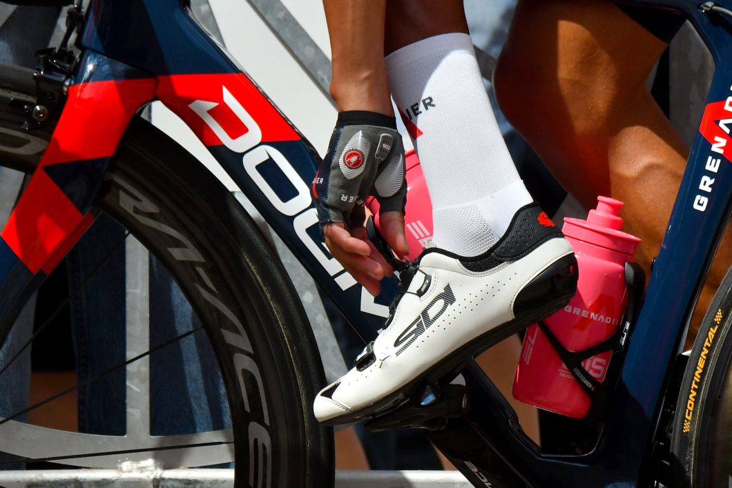 シューズの中で足がズレてしまうとパワーロスになりますので、足へのフィット感を高めるためにパーツごとにワイヤーダイヤルで締め込めたり、ベロクロなどで細かな調整ができるモデルもあり、選手の好みによって選択します。また、漕ぐ力をペダルへとダイレクトに伝えるソール部分は、カーボン素材を用いることで反りをなくしてパワーをロスなく伝達する設計になっています。全体から見ると一つ一つは細かなことかもしれませんが、レースで選手が力を発揮するために、ロードバイクと変わらないほど、よく考えられて設計されています。