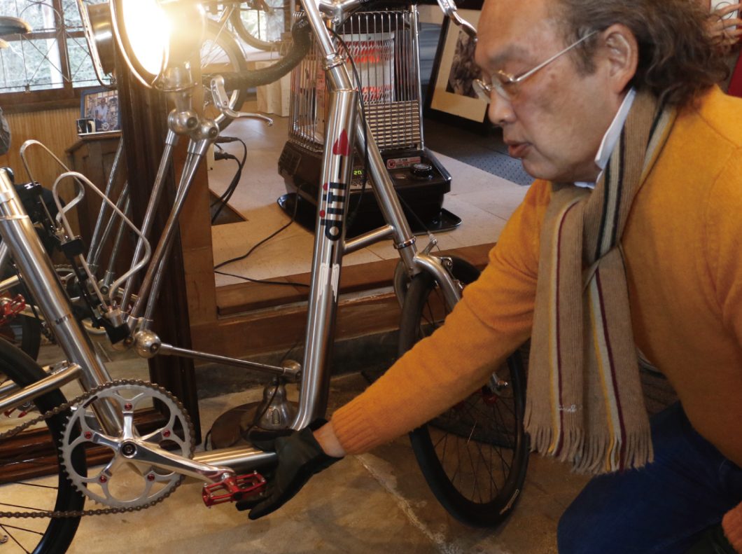 見た目の美しさを妥協することなく、自転車として機能させるための試行錯誤は困難を極めましたが、パイプを2重にすることで強度を上げるという画期的なアイデアで一気に前進しました。榛葉さんは古くはカワサキのMACH3やZ2といった伝説のバイクのマフラーを作ってきた会社で、これまで培った技術があってできたんだと思います。