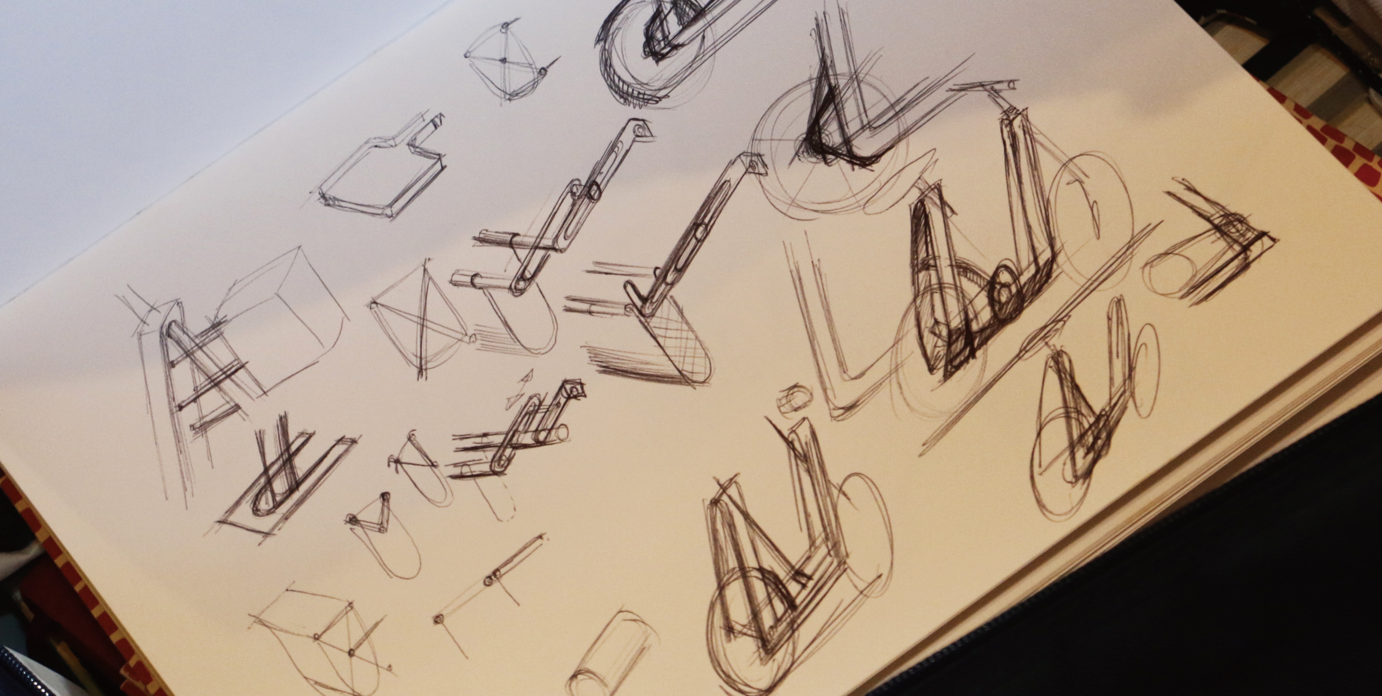 自転車のことは右も左もわからないところからデザインを始めたので、自動車のデザインプロセスを用いて設計を進めていきました。自動車は一番外側から内部に向かって設計を進めていきますので、まずは全長を決めるところから着手しました。いつも身近に感じられる、家の中に置けるコンパクトなサイズを目指し、一般的な集合住宅のエレベーターの奥行きが152cmということで車体の全長を148cmと決めました。