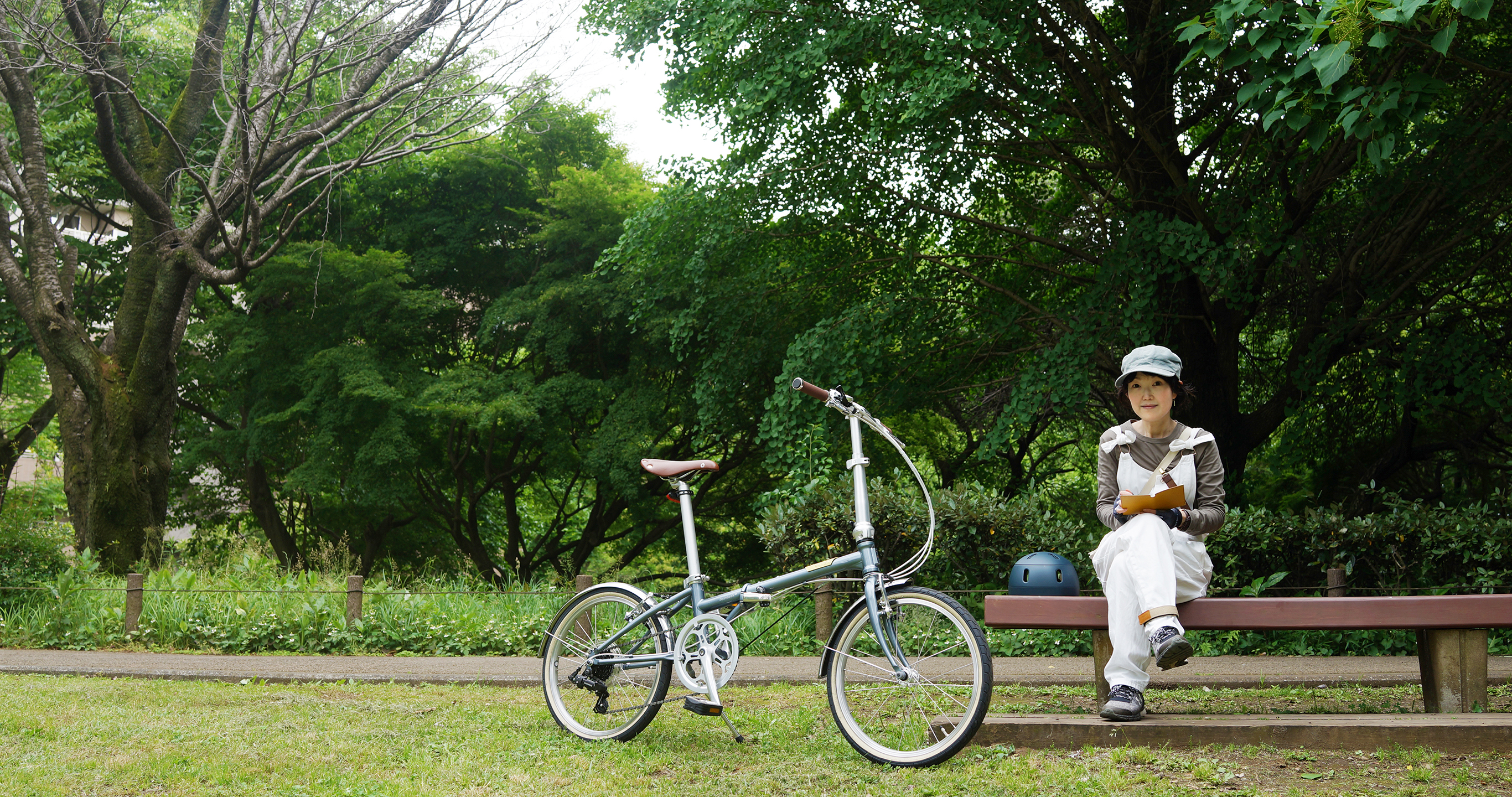 自転車アイテムブランド「moca」や、コラボレーションによるヘルメットプロジェクト「kumoa」など。おしゃれライダーならきっと知っているこれらの製品を展開するのが、関西に拠点を置く「モート商品デザイン」だ。東京都内に暮らす東海林ゆいさんは、リモートワーカーとして同社でwebデザイナーを務めている。小径車はそんな東海林さんの商売道具でもあり、生活必需品でもあり、リフレッシュできる趣味のツールでもある。