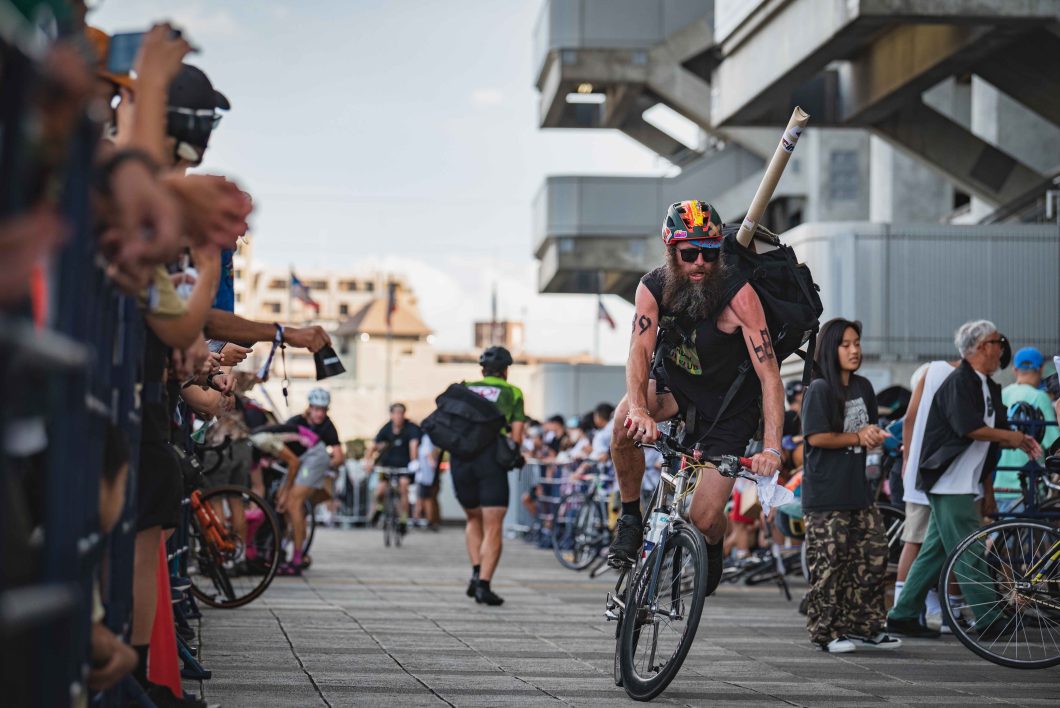 正直いって、彼らの存在は雑誌やインターネットでしか見たことがなかったが、実際に目の前に次々と現れるインパクトを自分なりに咀嚼して理解するのに、少しも時間がかからなったと言えば嘘になるかもしれない。それぐらい、彼らが使っているものや所作ひとつひとつ全てが新鮮だった。一方で、背負った大きなバッグや自転車をまるで自分の体の一部のように自在に操り、本来は最もピリピリしていそうなレース中のすれ違いざまですら互いに声を掛け合う。そんな彼らを見ていて、間違いなく人を惹きつける何かがある。その事実だけは直観的に理解できた。