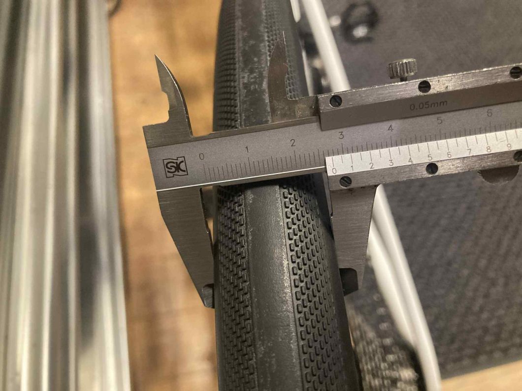 体重66kg、空気圧 F: 4.6bar, R4.9barで使用。リム内幅21mmのRoval Rapide C38に取り付け。
