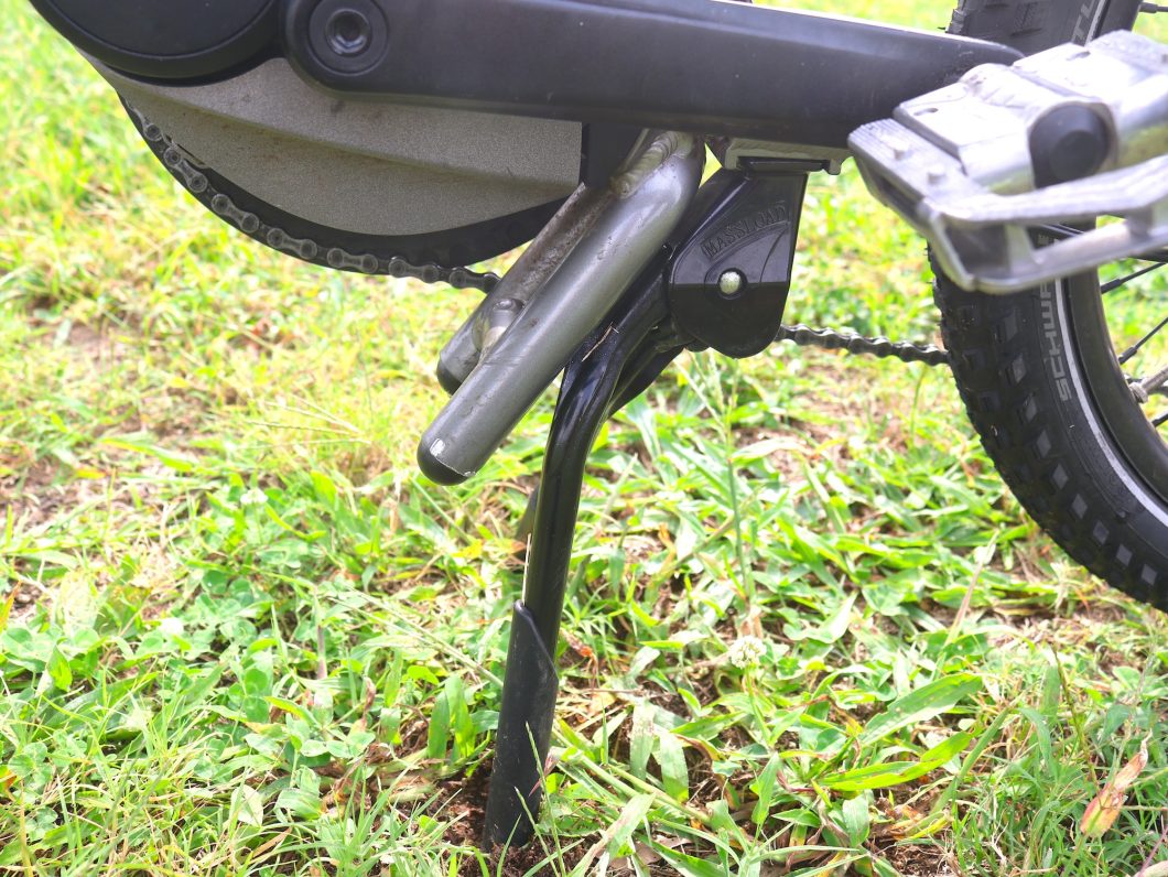 サイドスタンドをセンタースタンドに交換。これでキャンプの荷物を積んでも安定して立つ