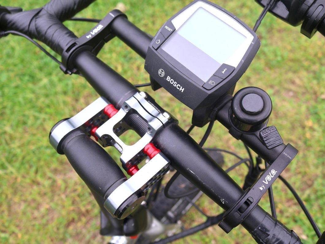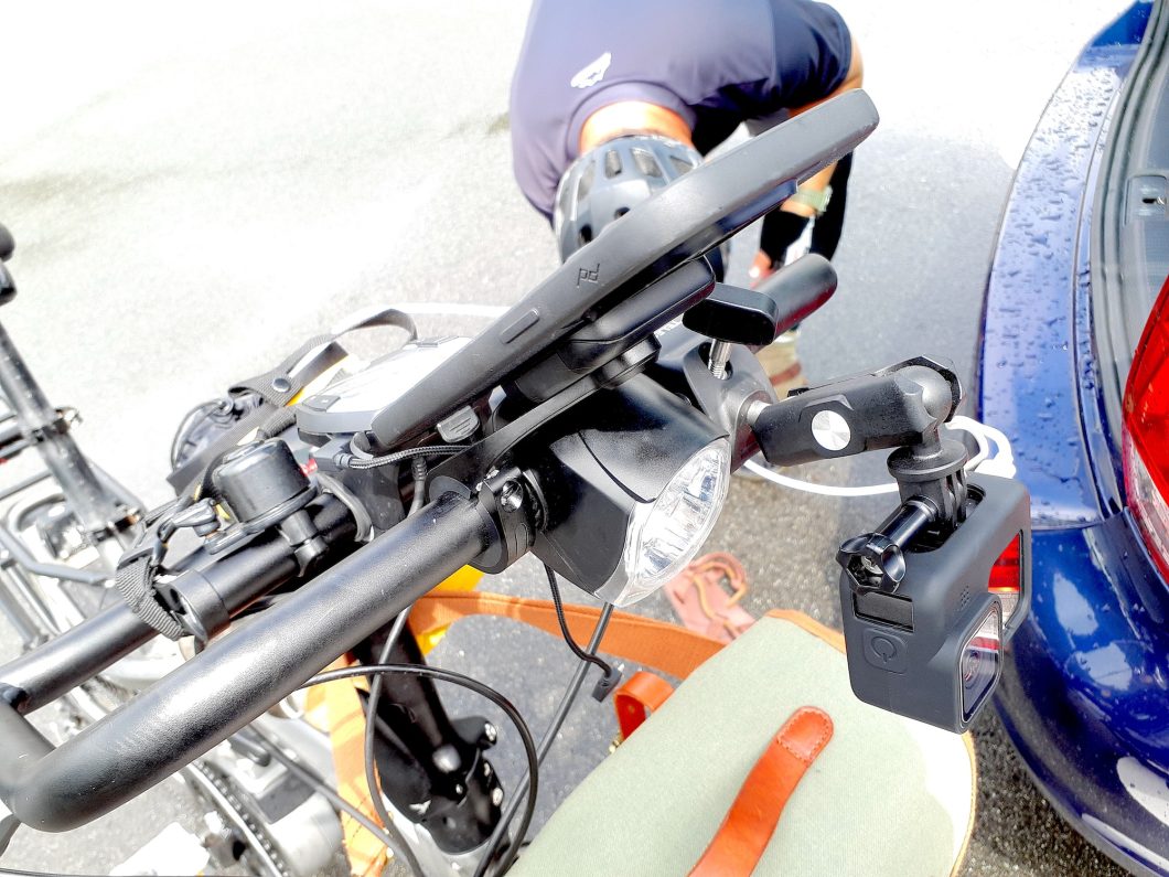 ハンドルです。マルチポジションハンドルにしたいというのが大前提でした。もっと前方でハンドル握って走りたかったんです。加えて僕の場合、仕事でGoProやスマホ、補助ライトみたいな機材をいくつもハンドルに付けなきゃいけないことがあって。だからそのスペースも必要でした。こんなの付けてるの日本で僕だけです。見たことないんで。