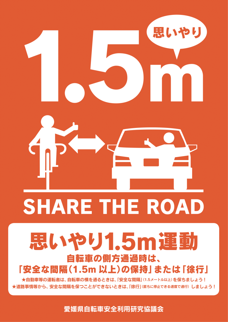 で、やっぱりそれって1.5mくらいになるのかなー。そもそも「思いやり1.5m運動」ってなんだ? それを平成28年から先頭に立って推進している愛媛県の県民環境部に聞いてみた。