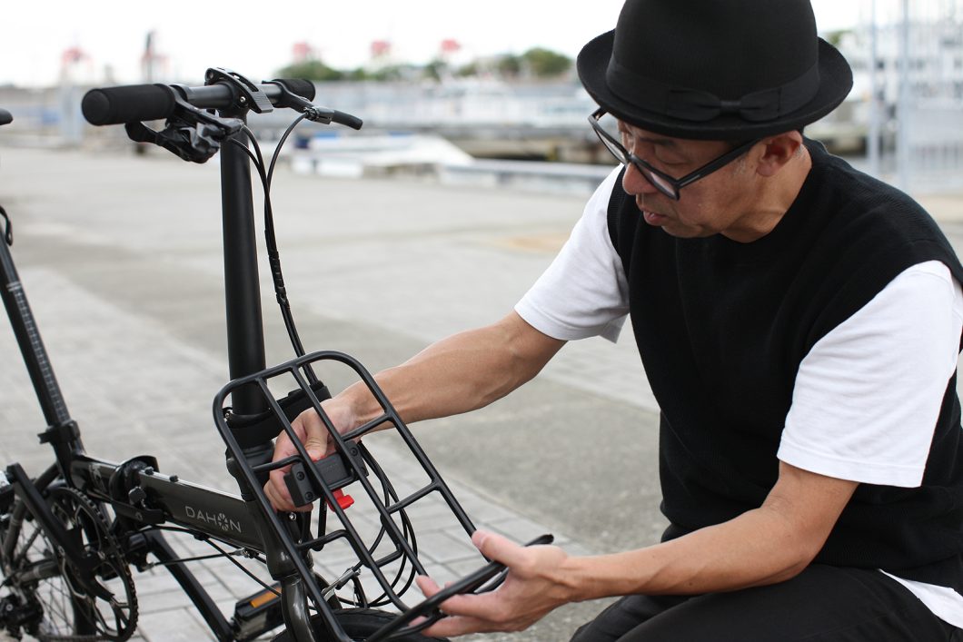 旅のスタイルは様々。ホテルを起点に身軽な装備で街なかを散策する程度なら、部屋からサッと持ち出せるコンパクト性を重視したチョイスもいいかもしれない。そんな思いでこの自転車を持ち込み、上山さんにコメントを求めた。