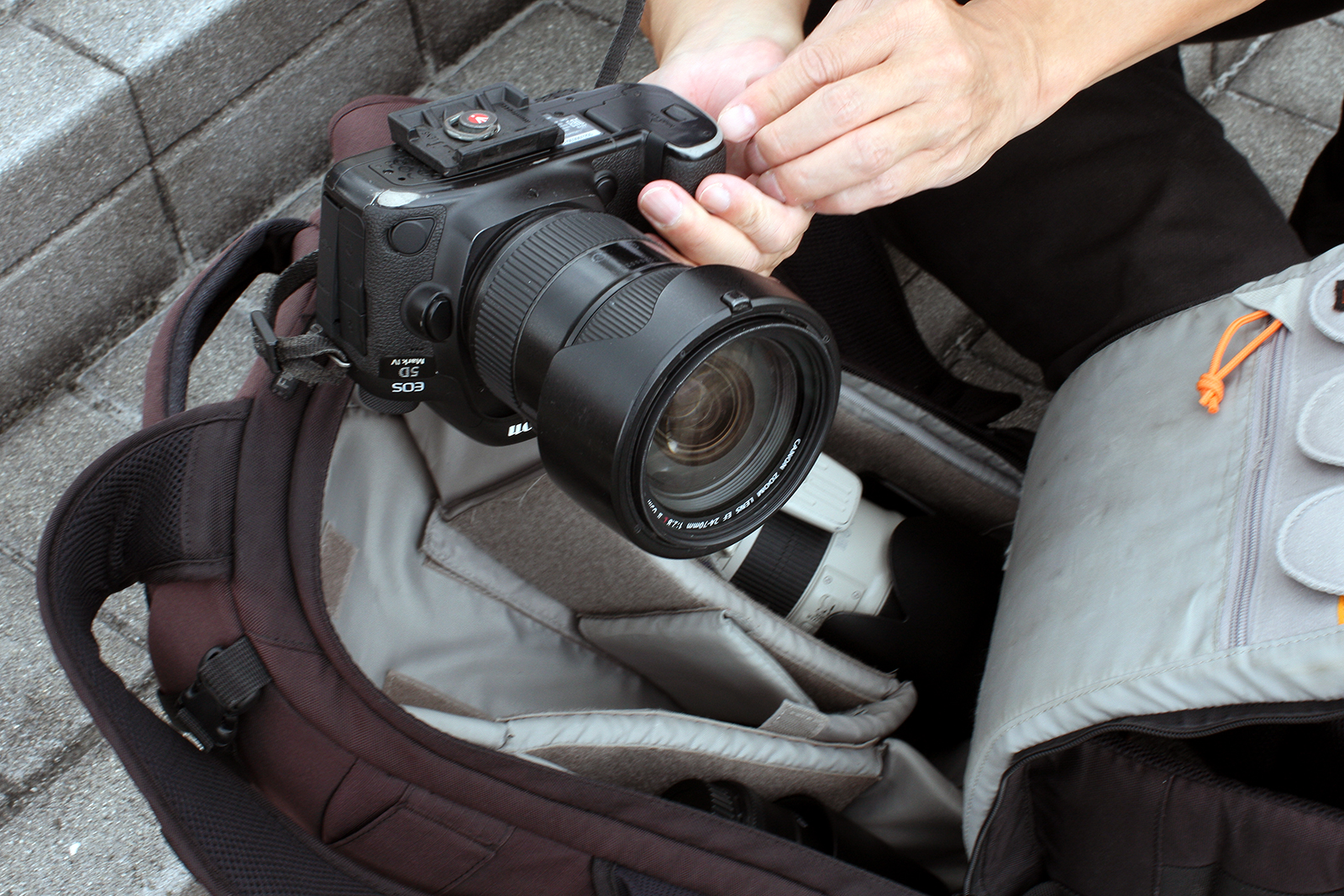 カメラ機材はよく使う広角、標準、望遠のズームレンズを3本とカメラ1台の構成にした。カメラ本体はいつも1台だ。壊れたり、盗まれたら日本から送ってもらえばいいと割り切っている。余分に持つ余裕はない。カメラ機材の雨対策も重要。雨の日は晴れの日とは違う表情を見せてくれる。カメラは水に弱いからとバッグの奥底に仕舞っておいたら撮影はできない。前年、ベトナムをシティサイクルで走ったとき、首からぶら下げるカメラ用の簡易防水バッグを使った。これが結構重宝したので今回もそれを使う。小雨ならそれで十分だ。そのほか、撮影したデータを取り込むためのノートパソコン、バックアップ用の外付けHDD2台とガジェット関連。これらをカメラバッグに収納し自転車のフロントに積む。
