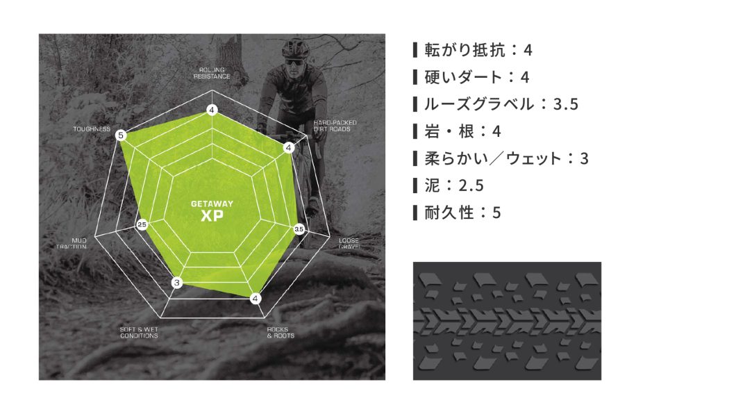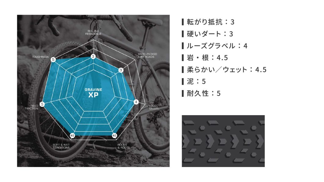XPは「Extra Protection(追加保護)」の意味です。ハンドメイドタイヤのしなやかな乗り味を保ちつつ、「強化サイドウォール」「ビードからビードまでの追加ケーシング層」を備えています。