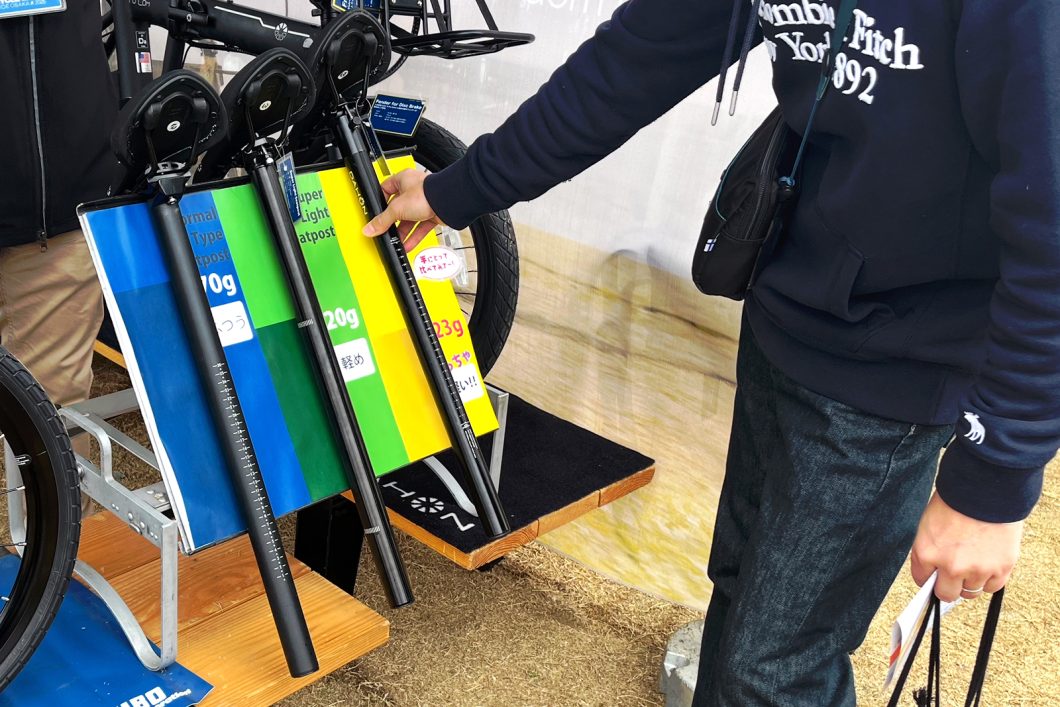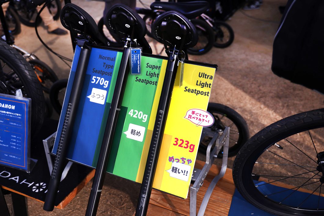 小径車ユーザーの中にはグラム単位での軽量化に取り組まれるマニアな方も多いためか、この展示は想定よりも多くの方に体感していただけました。