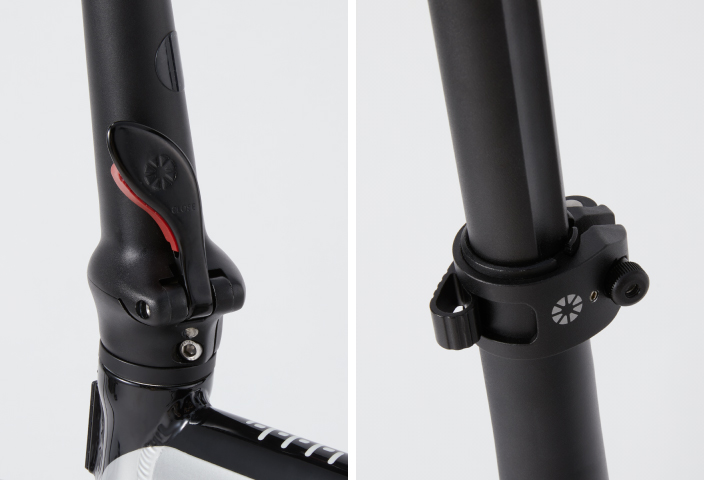 ハンドルポストヒンジ部は安全フック一体型を新たに採用。アジャスタブル式で高さの変更が可能。ハンドルポスト下側は一体鋳造による滑らかな見た目と剛性アップを実現。