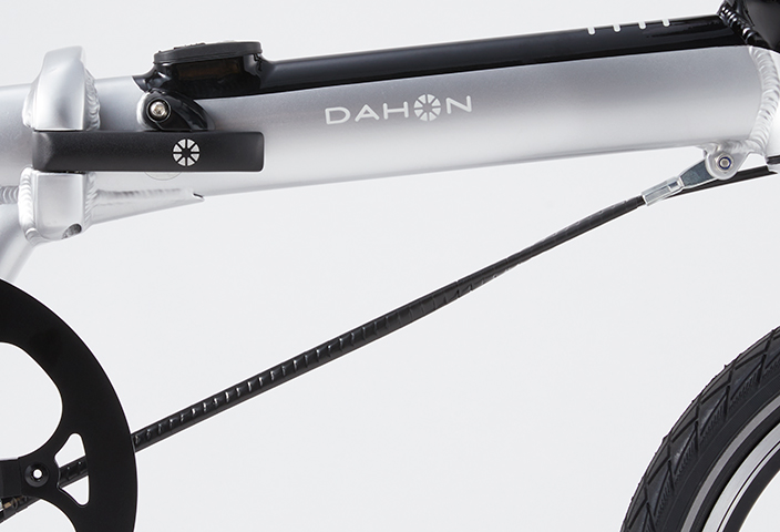 トップチューブとBBをケーブルでつなぐことによりフレームにトライアングルを形成。ヒンジ部分を中心にフレームへの負荷を軽減させて強度と耐久性を高める効果がある。