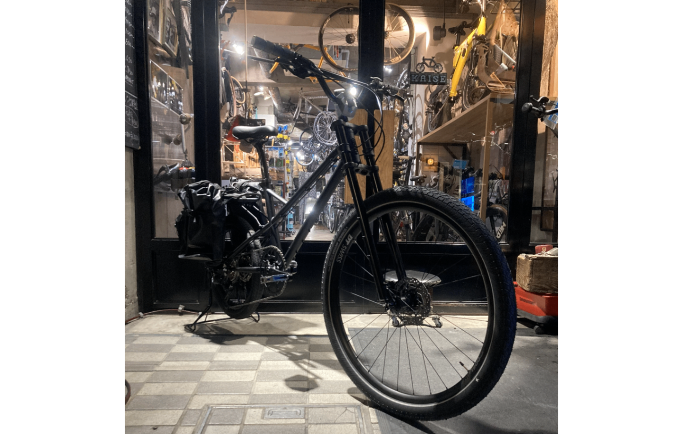 前輪を700c径ホイールにして前後バルーンタイヤでインチアップとカスタムアップ