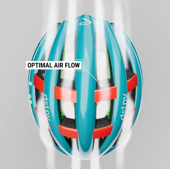 KOROYD素材のハニカム構造により、ヘルメット内の空気がスムーズに流れ、通気性が大幅に向上。頭部に涼しい空気を送り続けることで、登坂やレースなどの激しいライドでも快適さをキープ。後部の排気口も通気性をさらに高めます。