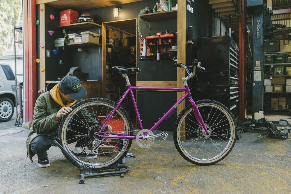 そんな時代を席巻した自由なスタイルを、現代のバイクトレンドを汲んで再解釈。ブレーキ方式は機械式のディスクブレーキを採用、ダウンチューブのボトルアイレットは三連化、フォークブレードとシートステーにもアイレットを追加することで、フレームバッグや前後キャリアの取り付けも可能となっており、単なる懐古趣味にはとどまらないディテールを採用。