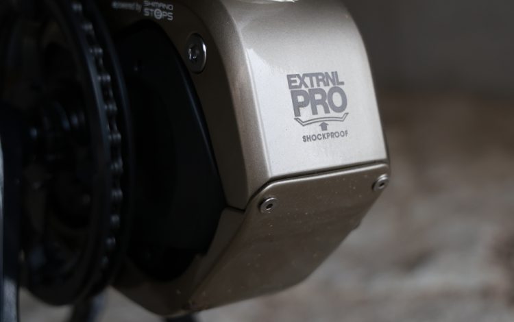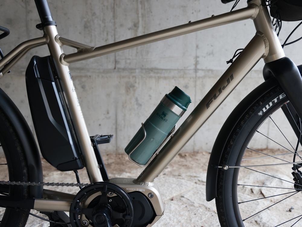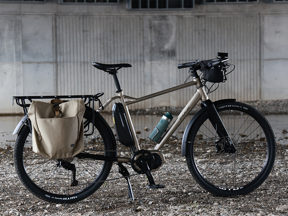 例えばホイールサイズ一つにもそういう意図が感じられました。グラベルバイクというカテゴリで考えると、ホイールが大きい方が本格的なロングツーリングに適している。一方で、E-bikeは高価なものなので、ともすれば汎用性を考えて20インチなどの小径に落ち着きがちですが、そうなっていないのはやっぱり「意図」的なのかなと。メカユニット部分を保護するためにプロテクターが採用されているという点も、ライドシチュエーションが必ずしも舗装路に限定されていないことの現れですし。