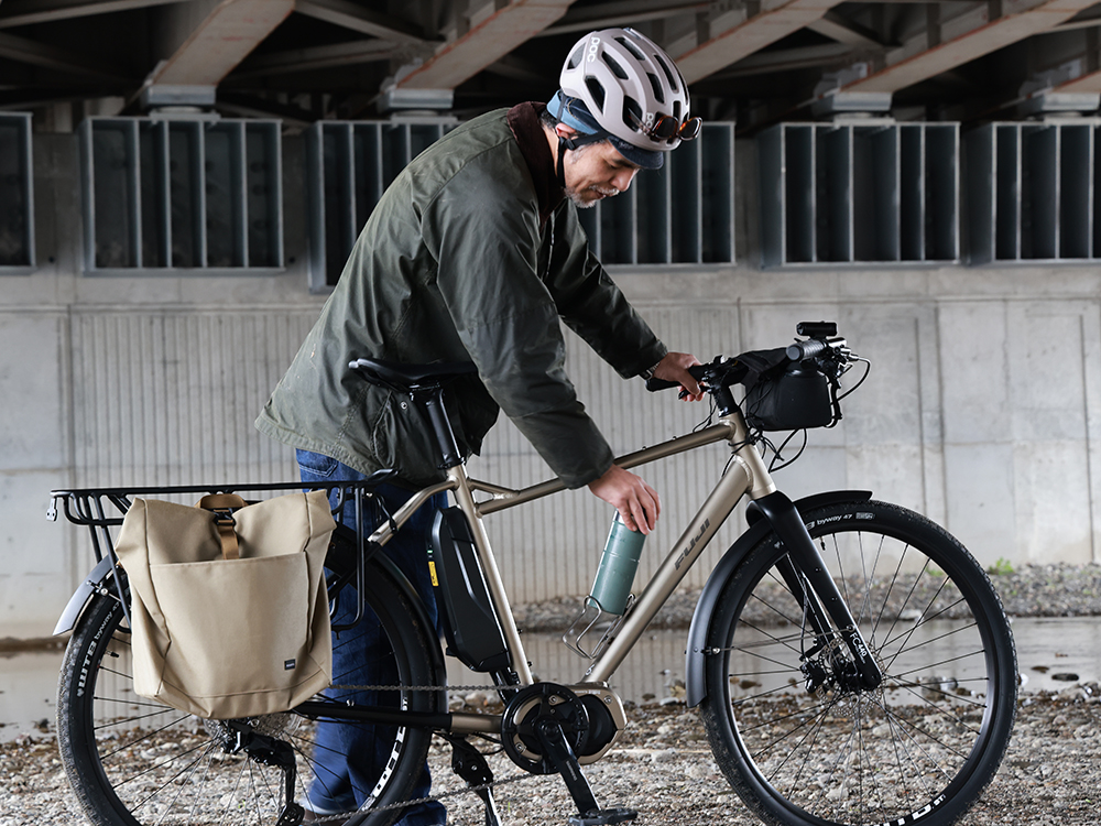 例えば、普段のキャンプライドではどうしてもミニマムさを重視して軽量でコンパクトなギアで楽しんでいますが、E-Bikeなら多少重くなってもパワーでカバーできるし、ちょっとぐらい荷物が増えてもそれはそれで贅沢なキャンプライドが楽しめるのかなと。