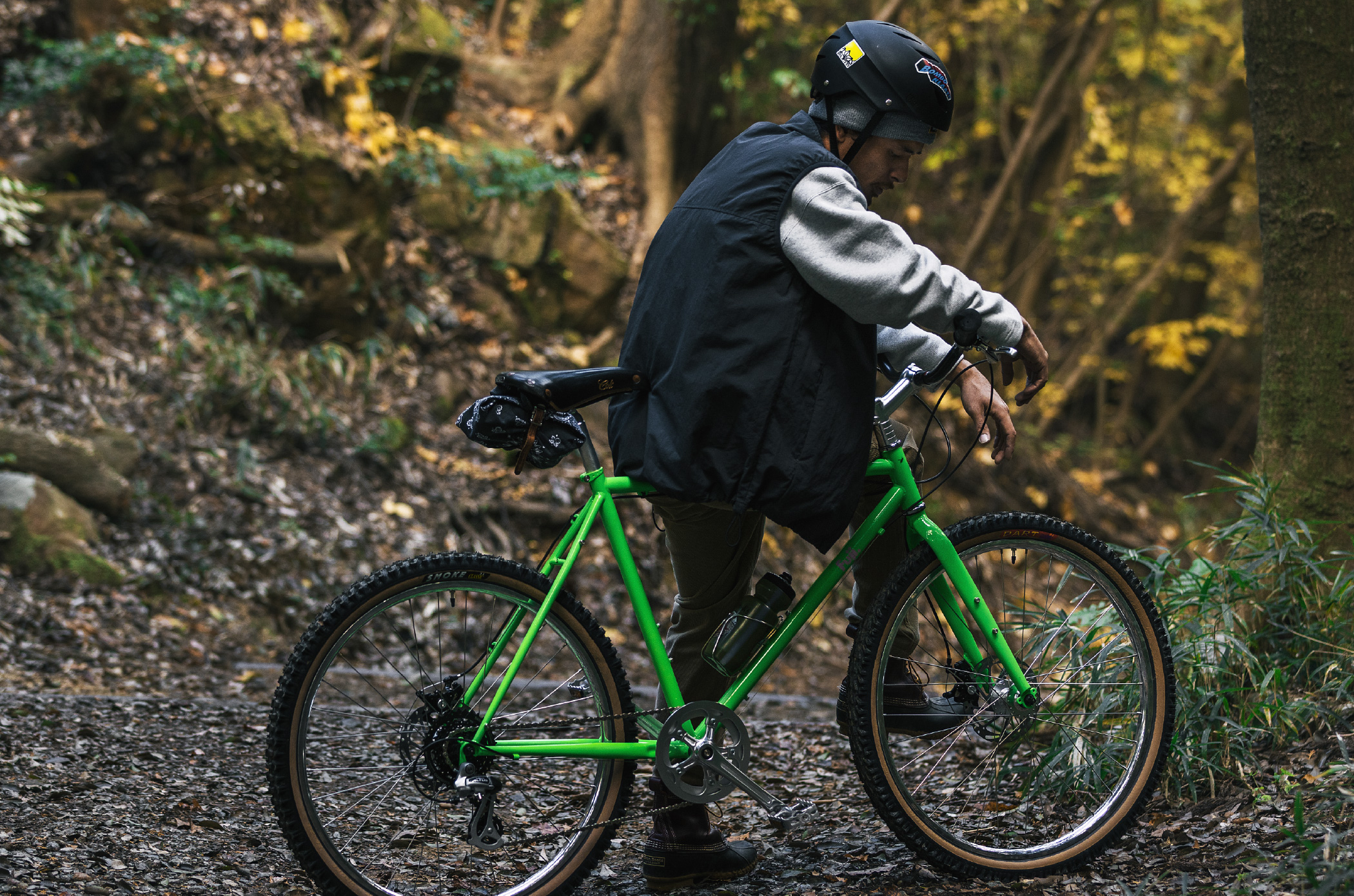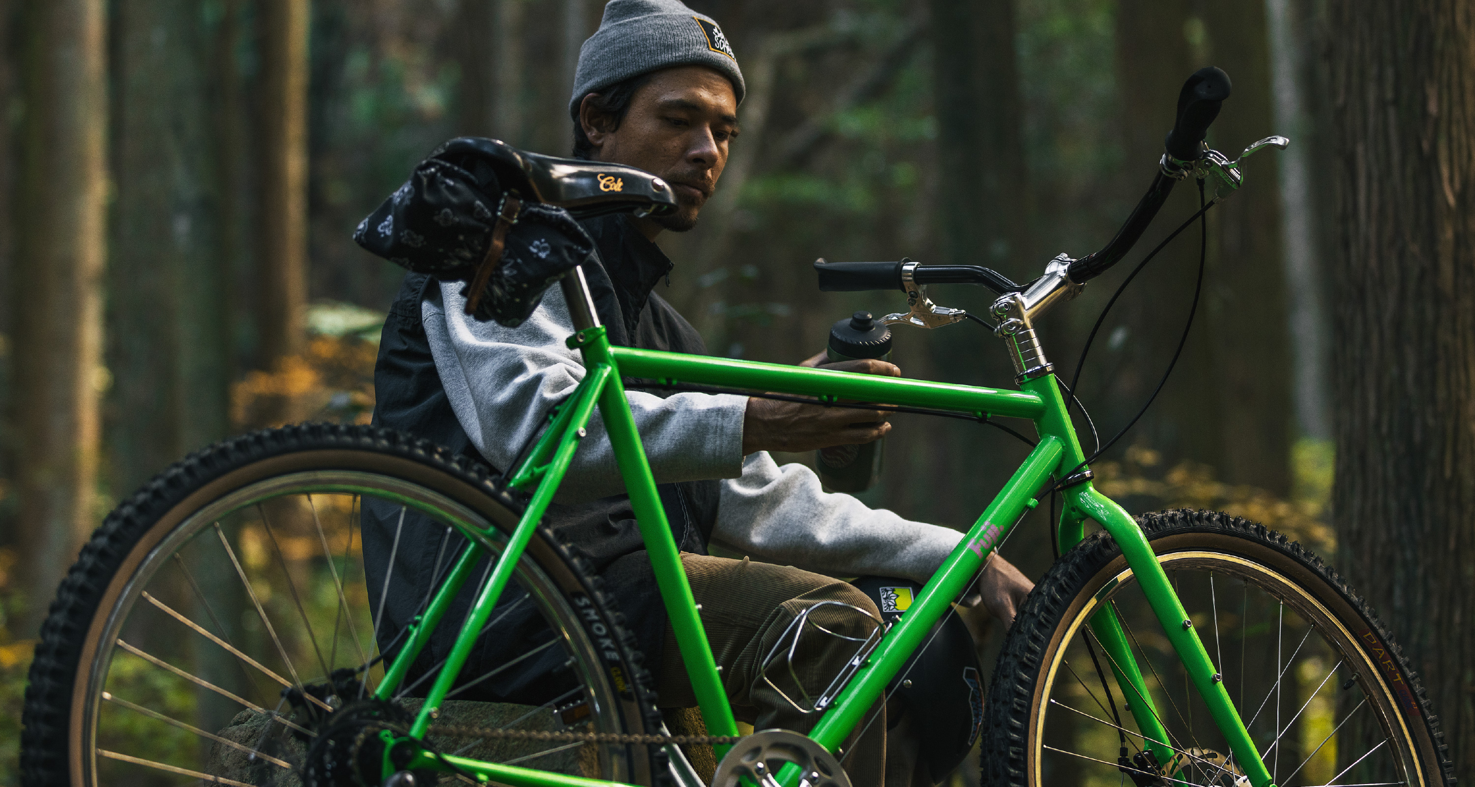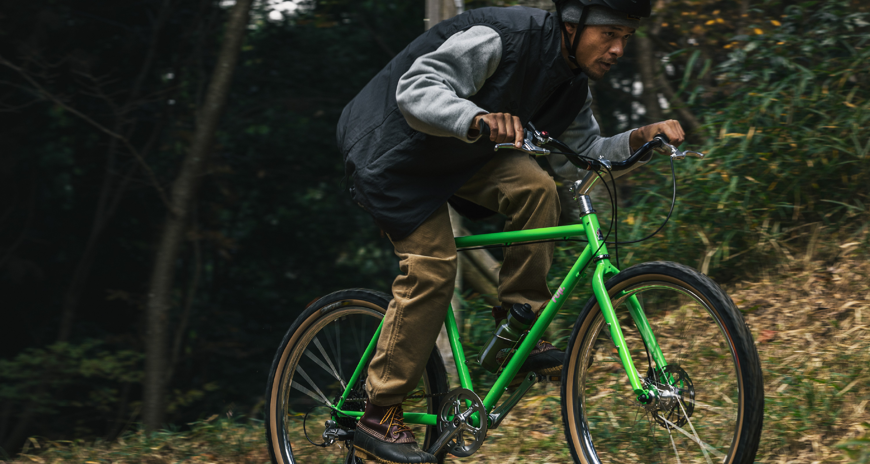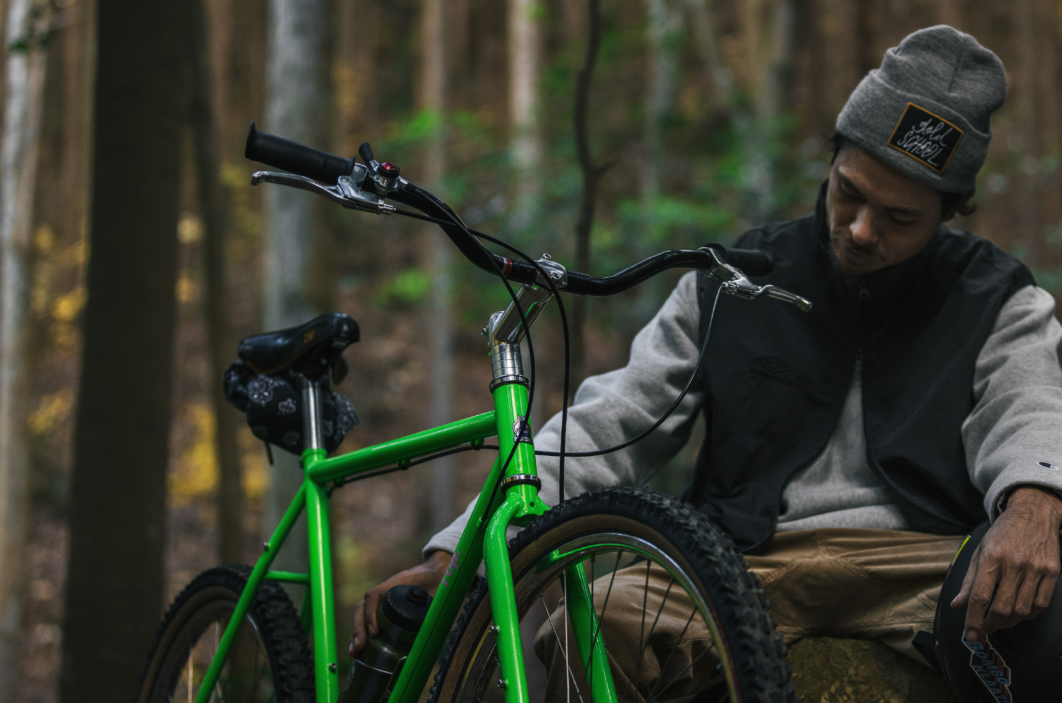 懐古主義にとどまらず、現代の解釈で全地形を楽しむために生まれたネオクラシックATB。ピュアな山遊びを行うために発生したMTB(Mountain Bike)に対し、山岳・市街地の両用を目的とし開発されたATB(All Terrain Bike=全地形型自転車)は、より曖昧な定義のもと、自由度の高い設計やコンセプトが用いられ、特に1980年代後半から1990年代初頭にかけて絶大な人気を誇った。そんなかつての時代背景に思いを馳せながら、現代のバイクトレンドをブレンドし再解釈。ブレーキ方式は機械式のディスクブレーキを採用し、ダウンチューブのボトルアイレットは三連化。さらにはフォークブレードとシートステーにもアイレットを追加することで、フレームバッグや前後キャリアの取り付けも可能となっており、随所で単なる懐古趣味にはとどまらないディテールを採用している。推奨最大タイヤサイズは26″x2.3″(26″x1.95″標準装備)、センタースタンド台座も備えており、コミューター~バイクパッキングまで網羅した拡張性はまさしくネオクラシックスタイルと呼べるだろう。
