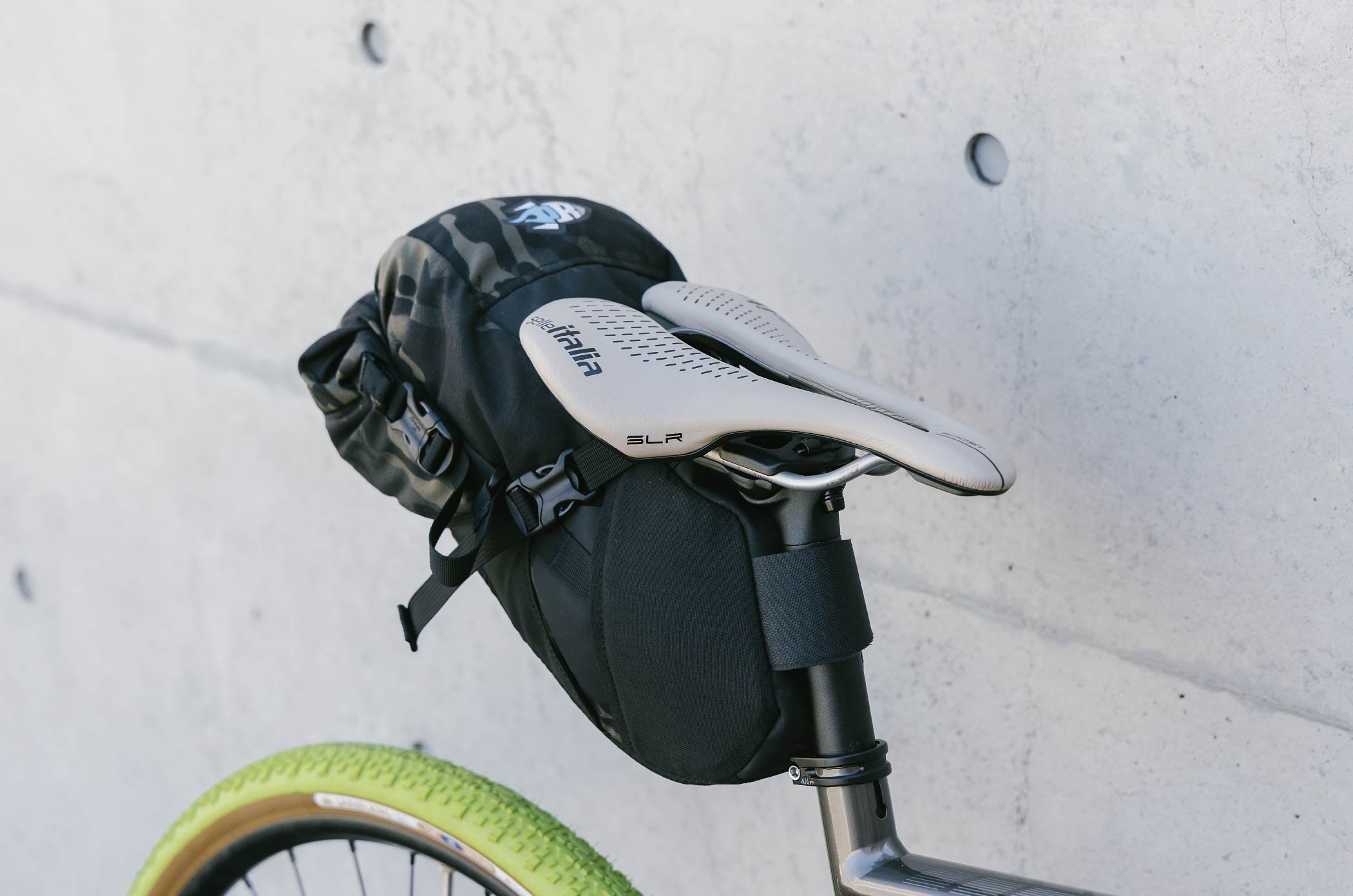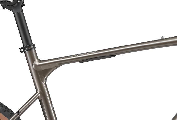 バイクパッキングでも走行不能なエリアに遭遇して長い距離を担ぐのも稀ではないので、2mmの厚さのシリコンパッドをトップチューブ下に標準装備してライダーの肩への負担の軽減を狙った。