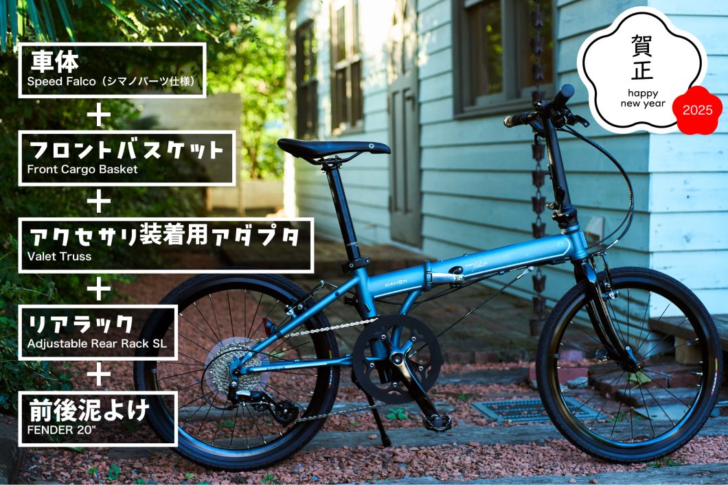 世界最大のスポーツフォールディングバイクブランドDAHONからは、クロモリフレームの定番モデルSpeed Falcoやセミフォールディング仕様のD-Zeroが普段使いで便利になるフロントバスケットやリアラックなどのアクセサリーをセットにして、お得な価格でご提供! 2025年は、休日のサイクリングだけでなくお買い物や通勤通学も、ぜひDAHONの自転車で楽しんでください。