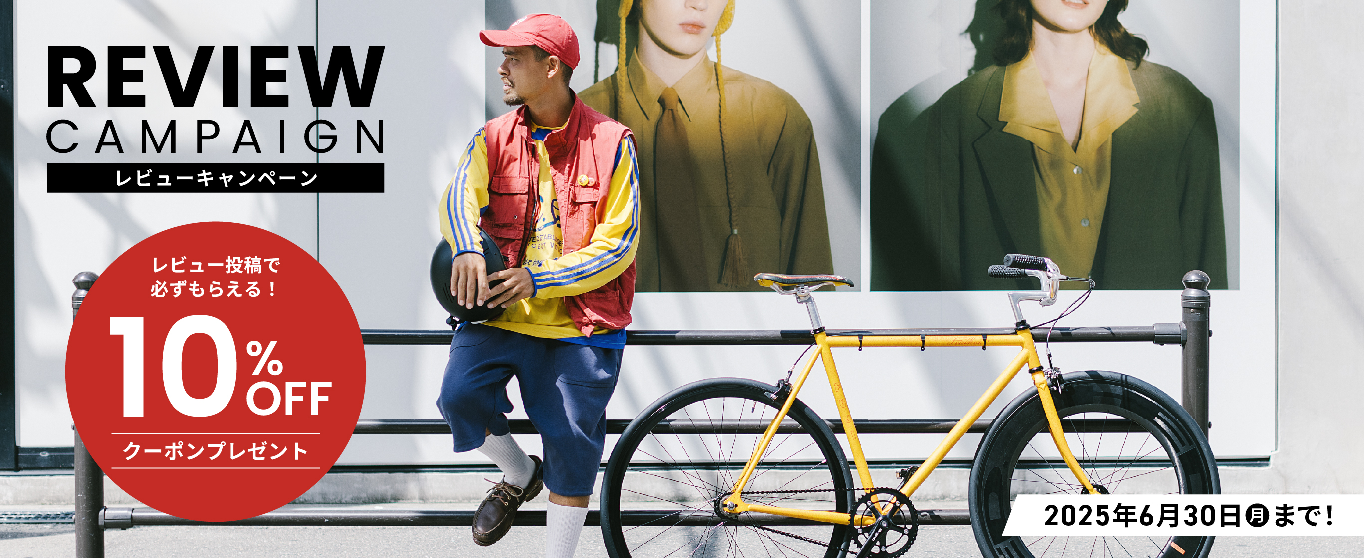 自分のお気に入りの自転車や関連アクセサリーなどがあれば、人にもその良さを伝えたいですよね!そんな情報をみんなでやり取りできれば素敵だな!と考え、このたび期間限定にはなりますが、レビューを投稿いただいた方にもれなくお得なクーポンをプレゼントするキャンペーンを実施いたします。